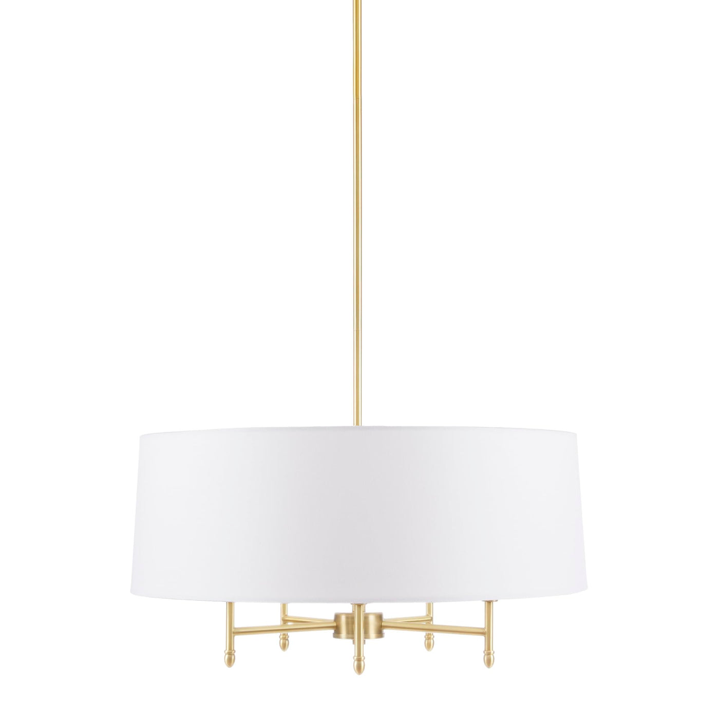 Elevate your home décor with this versatile 5-light chandelier, featuring a white tapered fabric shade. Its classic round shape and gold brass metal frame bring a glamorous, luxurious touch to any space. With broad appeal, this gold chandelier fits traditional, modern, and transitional home décor, making it ideal for dining rooms, living rooms, bedrooms, entryways, and more. Adjustable to a maximum 62.5-inch drop height, dimmable with compatible switch and bulb, and adaptable to sloped ceilings, this versatile chandelier offers flexibility for various room designs. Hardwired; professional installation recommended. Upgrade your space with this elegant chandelier today!