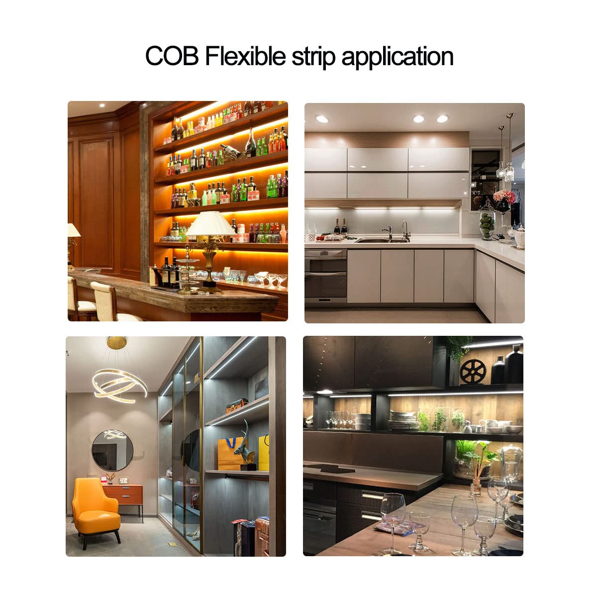 Q: What applications are suitable for these LED strip lights?A: These COB LED Strip Lights are ideal for a variety of applications, including under cabinet lighting, desk lighting, indoor home decoration, architectural lighting, auditorium walkway lighting, stairway lighting, and shop-window decoration. They are safe for use around children and pets.