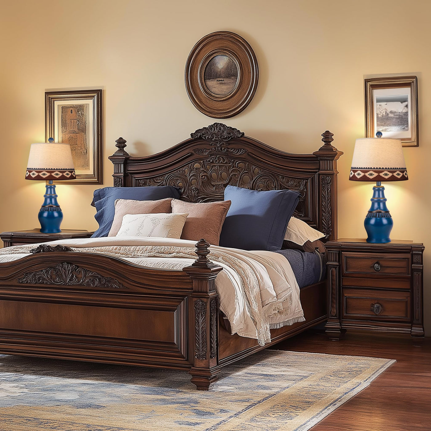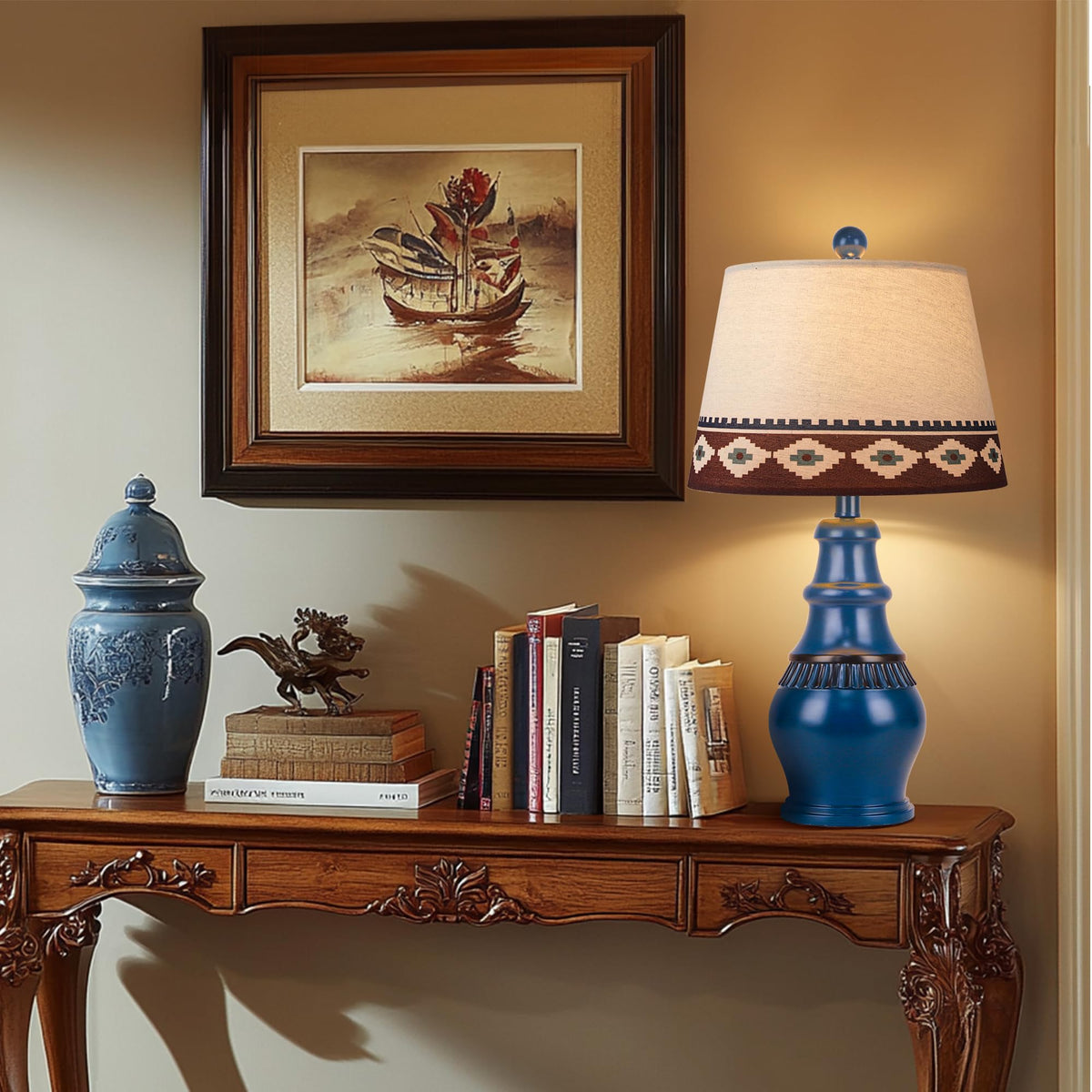 Hamucd Farmhouse Rustic Table Lamps Set Of 2 For Living Room,3-Color Temperature Dimmable Southwest Bedroom Nightstand Lamps For