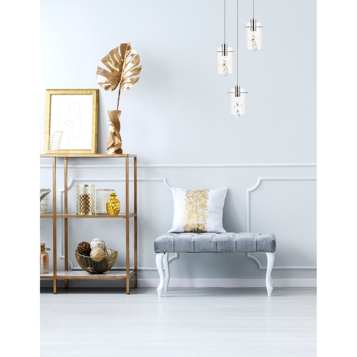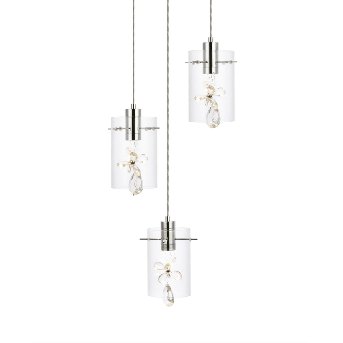 The Hana collection sparkles with an extraordinary display of faceted crystal pendalogues, creating the illusion of a shimmering cascade of ornamentation pouring from a sleek metal canopy. These fixtures would be a commanding visual presence in any room, and will fit comfortably in smaller spaces. Lighting illuminated with led diodes emitting 3000K soft white.