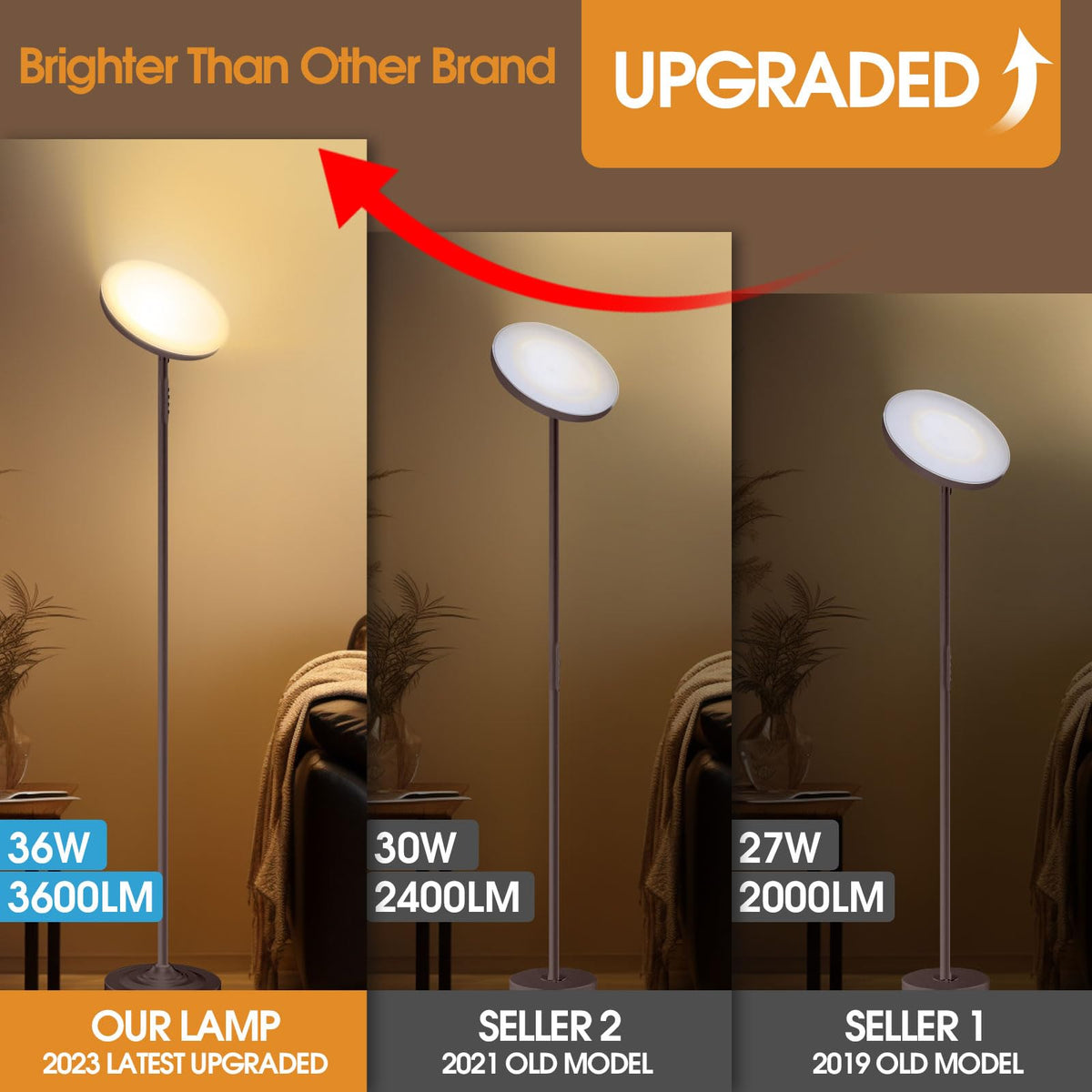 Hanaking Floor Lamp, 36W/3600Lm Super Bright Floor Lamp With Remote Control, Stepless Adjust Color Temperatures And Brightness,