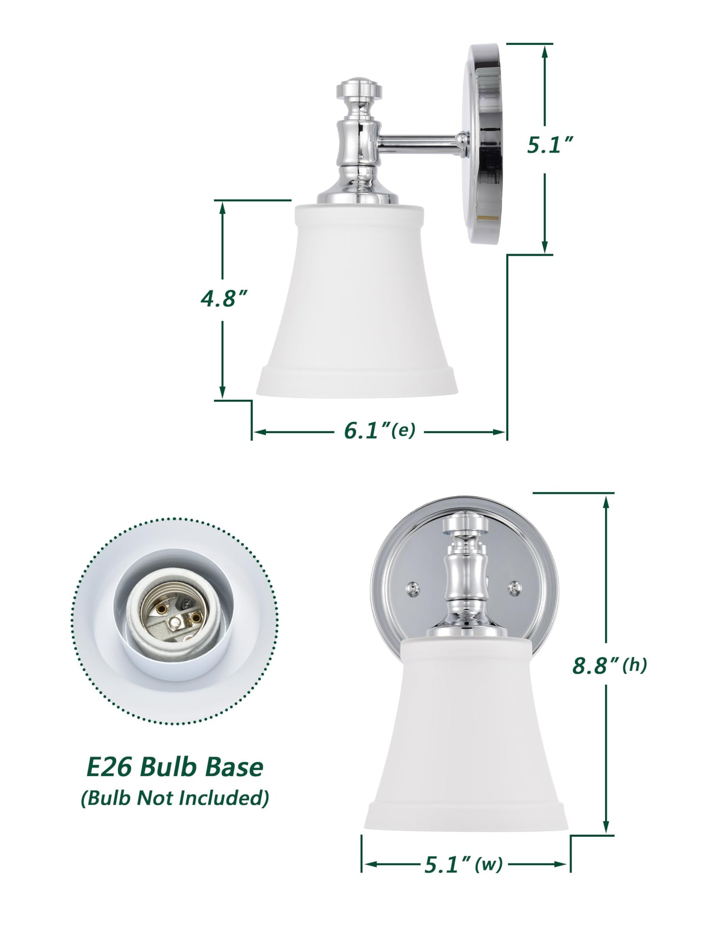 Hanaloa Wall Sconces, Traditional Chrome 1 Light Sconce, Wall Light with Opal Glass Shade for Bedroom Bathroom Living Room & Hal