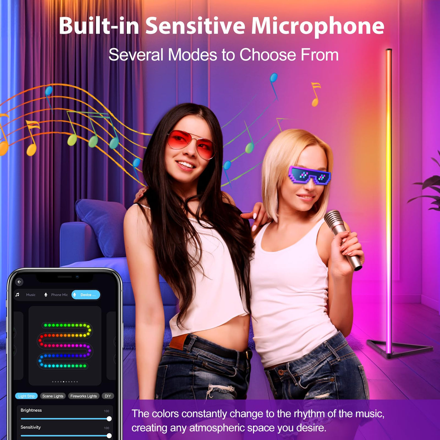 Rgbic Floor Lamp,16 Million Colors Led Lights For Bedroom,141Cm Tall Modern Floor Lamps With Music Sync,Standing Lamp With App And Remote Control,Gaming Ambient Lighting Corner Lamp Living Room Decor