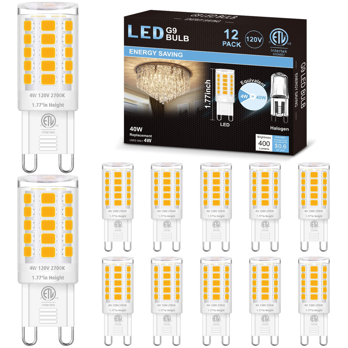 Hansang 12 Pack G9 Led Bulb 2700K Soft Warm White, 4W 40 Watt Halogen Equivalent G9 Light Bulbs, Height 1.77 Inch Short T4 G9 Bi