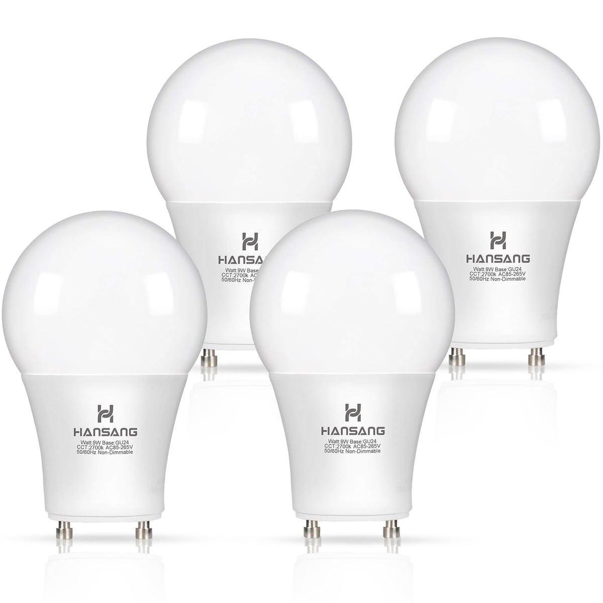 hansang GU24 LED Light Bulb,A19 Shape Bulb,9W (100W Equivalent),900 Lumens,2700K Warm White,Gu24 Twist Lock Base,Replacing CFL C