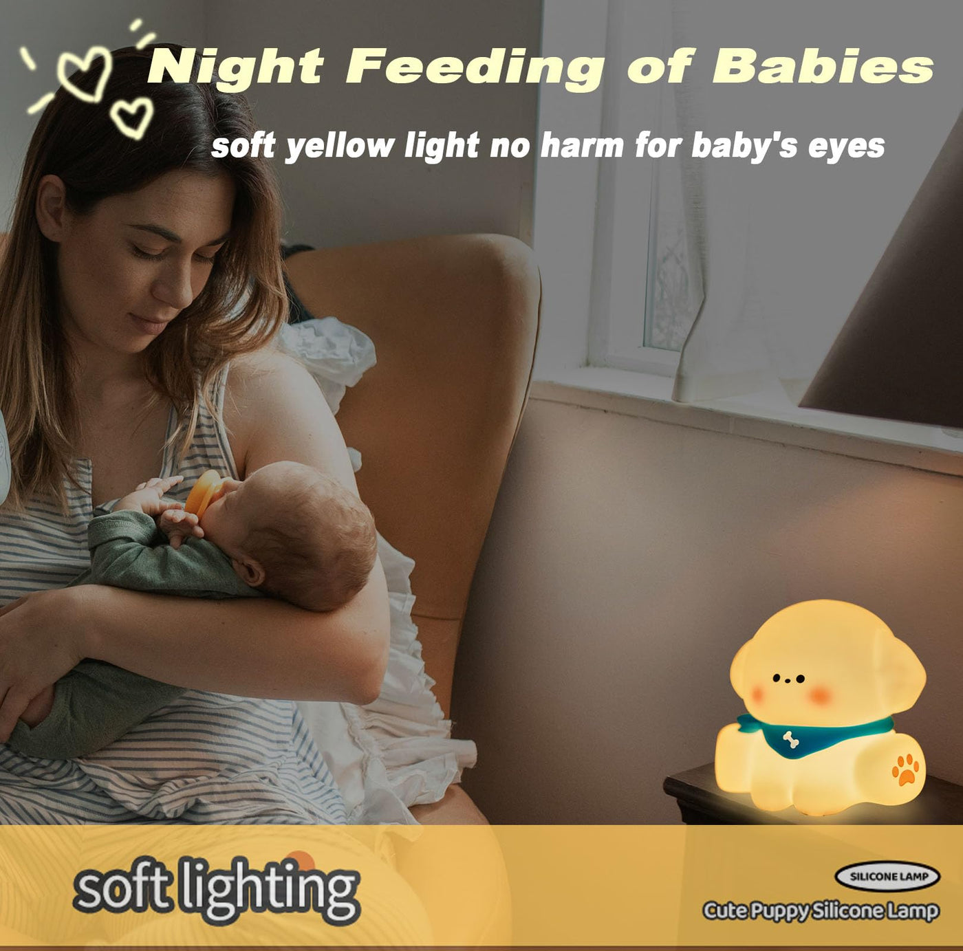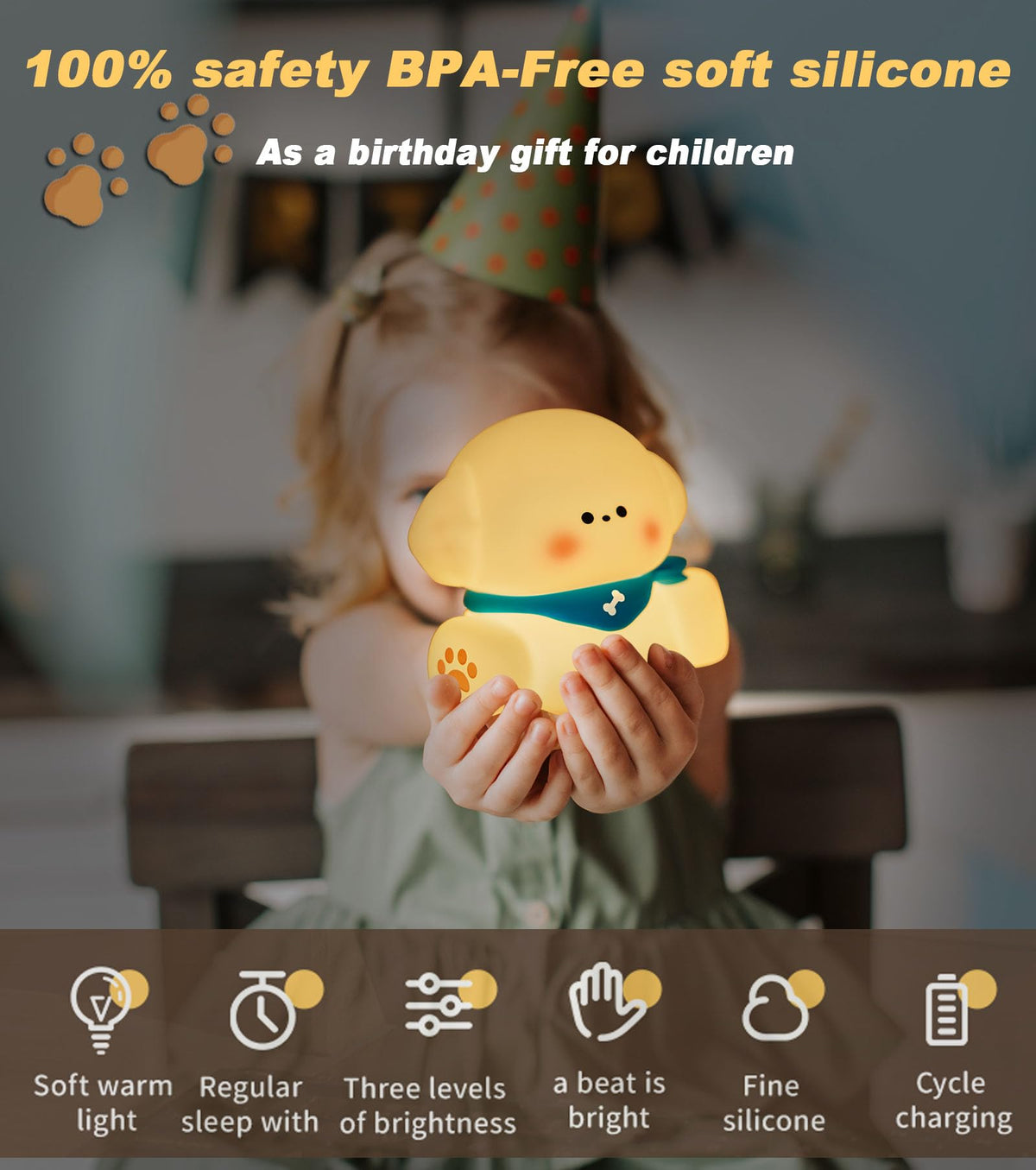HAPPYBAG Dog Lamp, Cute Puppy Night Light for Kids, Dimmable Nursery Puppy Lamps, Silicone Fruit Bedside Lamp for Baby and Toddl