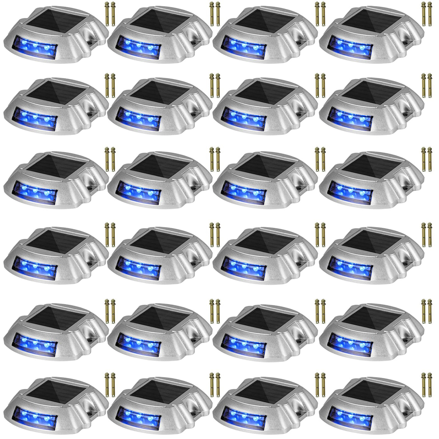 Happybuy Driveway Lights 24-Pack Solar Driveway Lights Bright Blue With Screw Solar Deck Lights Outdoor Waterproof Wireless Dock
