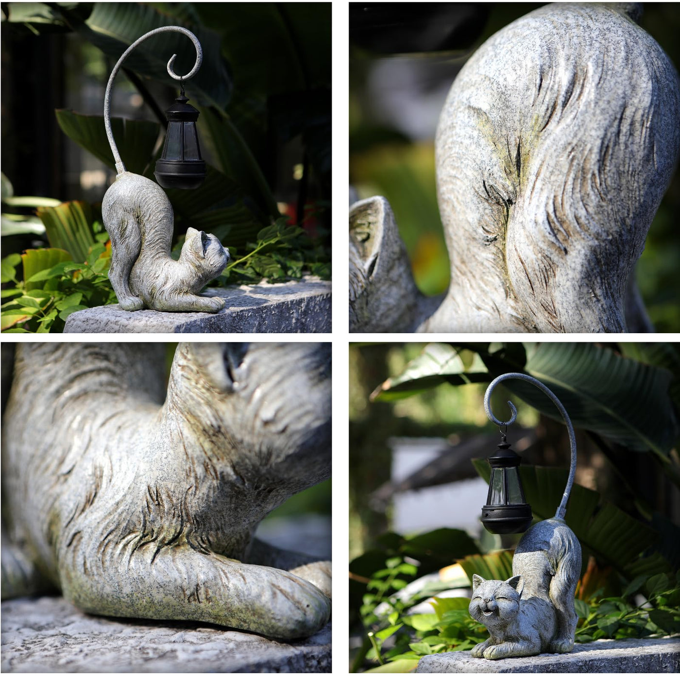 Hapyard Laughing Cat Figurine With Solar-Powered Led Light, 15.7 Inches Tall Marble, Perfect For Gift Garden Decor Or Housewarming For Cat Lovers.