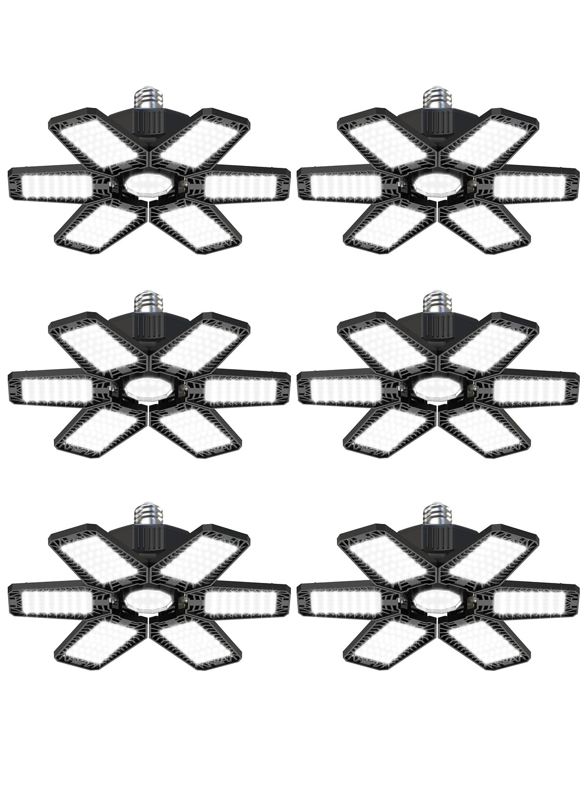 Hapylumi Led Garage Lights 6 Pack - 180W 18000Lm Garage Lighting Led Ceiling With 6 Deformable Panels, 6500K Shop Lights Screw I