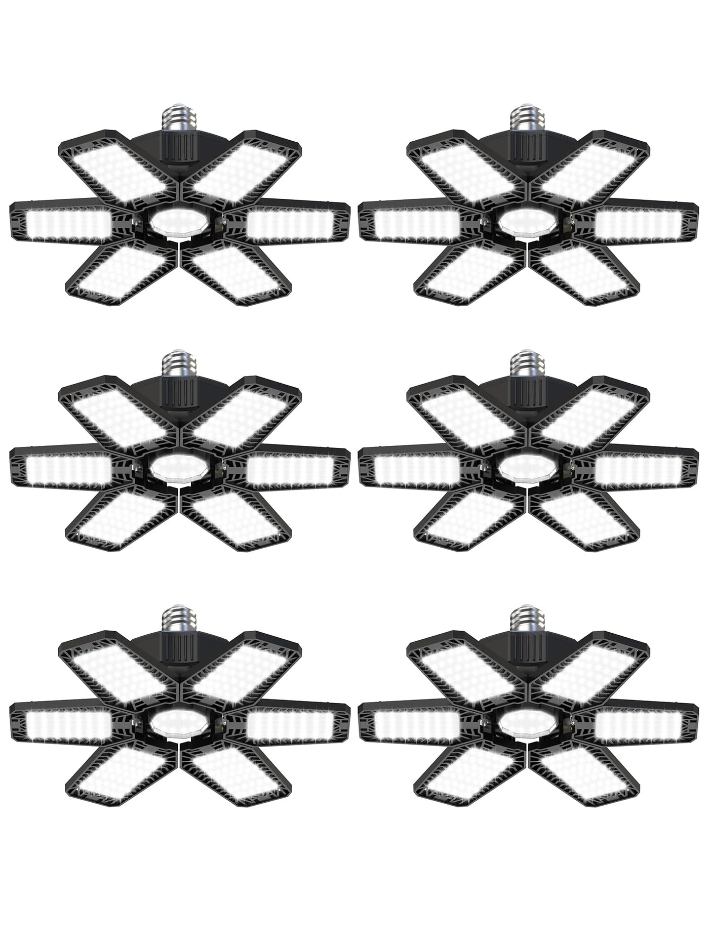 Led Garage Lights - Garage Lights Ceiling Led With 6 Adjustable Panels, 6500K Daylight Deformable Garage Lighting Bulb Fit E26/E27, Led Light For Garage Shop Barn Basement