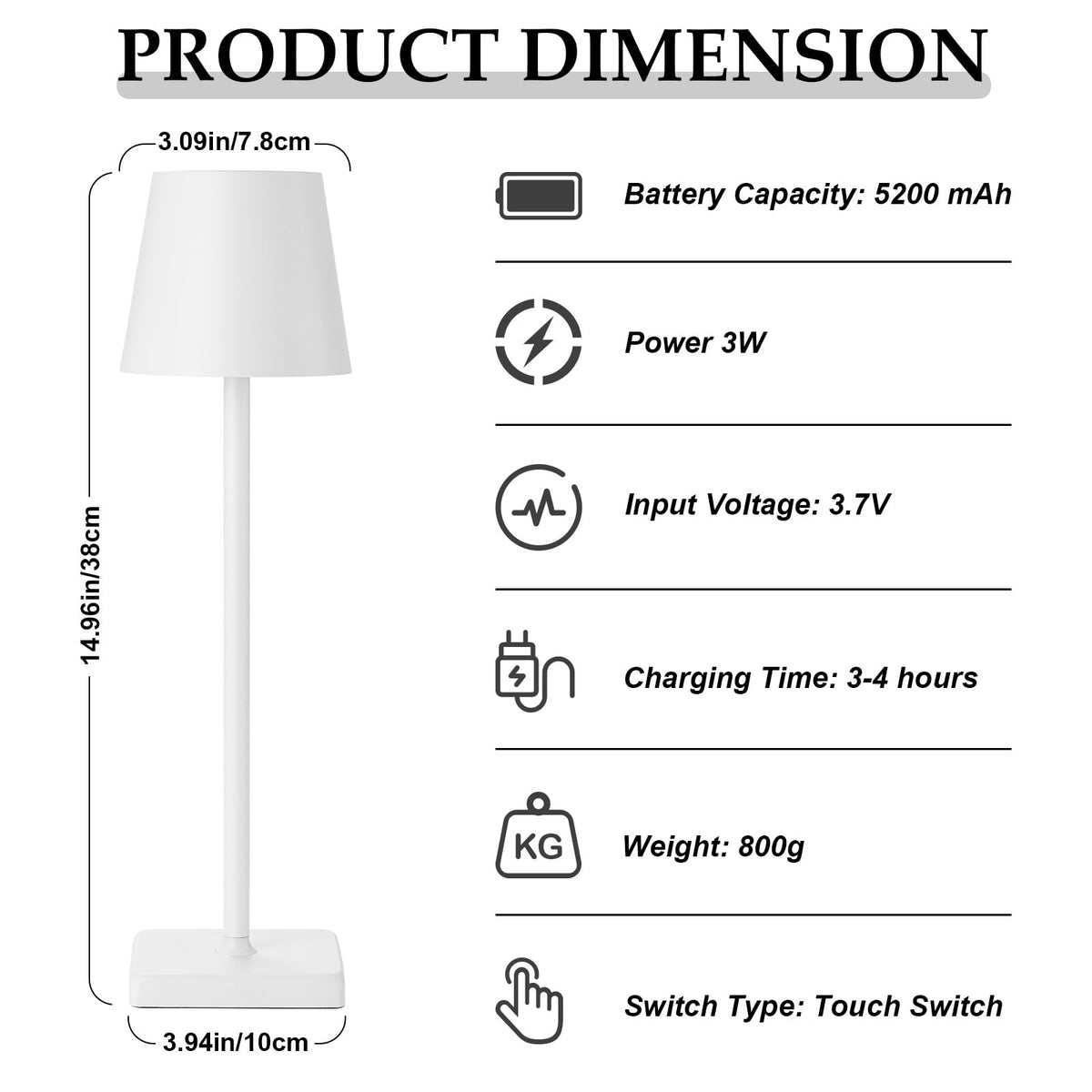 Q: What is the battery life of the HASUN Rechargeable Table Lamp?A: The HASUN Rechargeable Table Lamp features a built-in 5200 mAh rechargeable battery that can last between 9 to 30 hours on a full charge, depending on the brightness setting. On high brightness, it lasts about 9-10 hours, while on low brightness, it can last up to 30 hours.