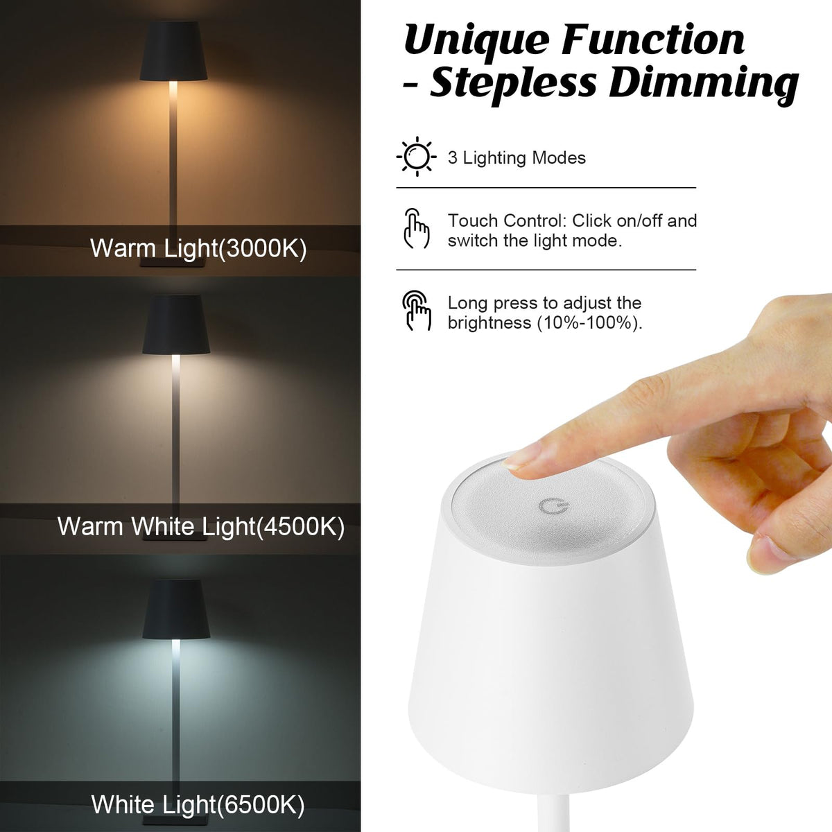 Hasun 2 Pack Rechargeable Table Lamp, Led Cordless Desk Lamp, 5200Mah Battery Operated Table Light, 3 Color Stepless Dimming Up
