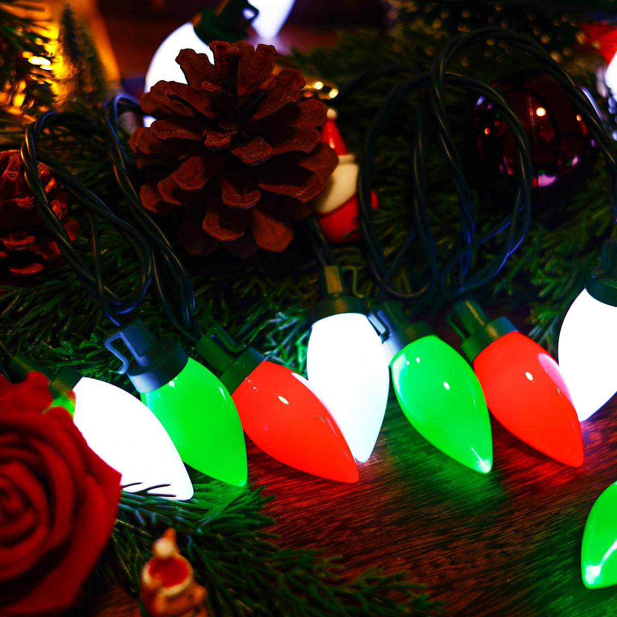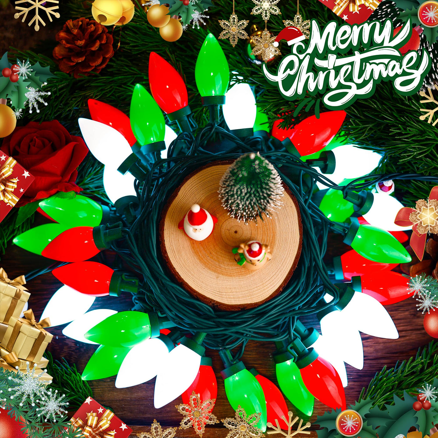 Hayata C9 Big Bulbs Classic Christmas Lights 50 Led 32Ft Strawberry String Light - Outdoor, Indoor, Garden, Yard, Party, Home, Wreath, Garland,Tree (Red White Green - 50Led)