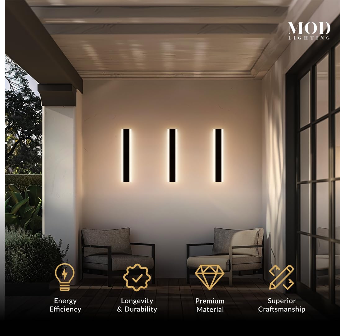 ?????? ???????????????? Haylen | Waterproof Outdoor Wall Light, Led Dimmable With Remote 3000K-6000K, Long Outdoor Porch Lights, Wired Lighting Fixture, Patio Exterior Wall Sconce, 1-Pack (Black, 24")