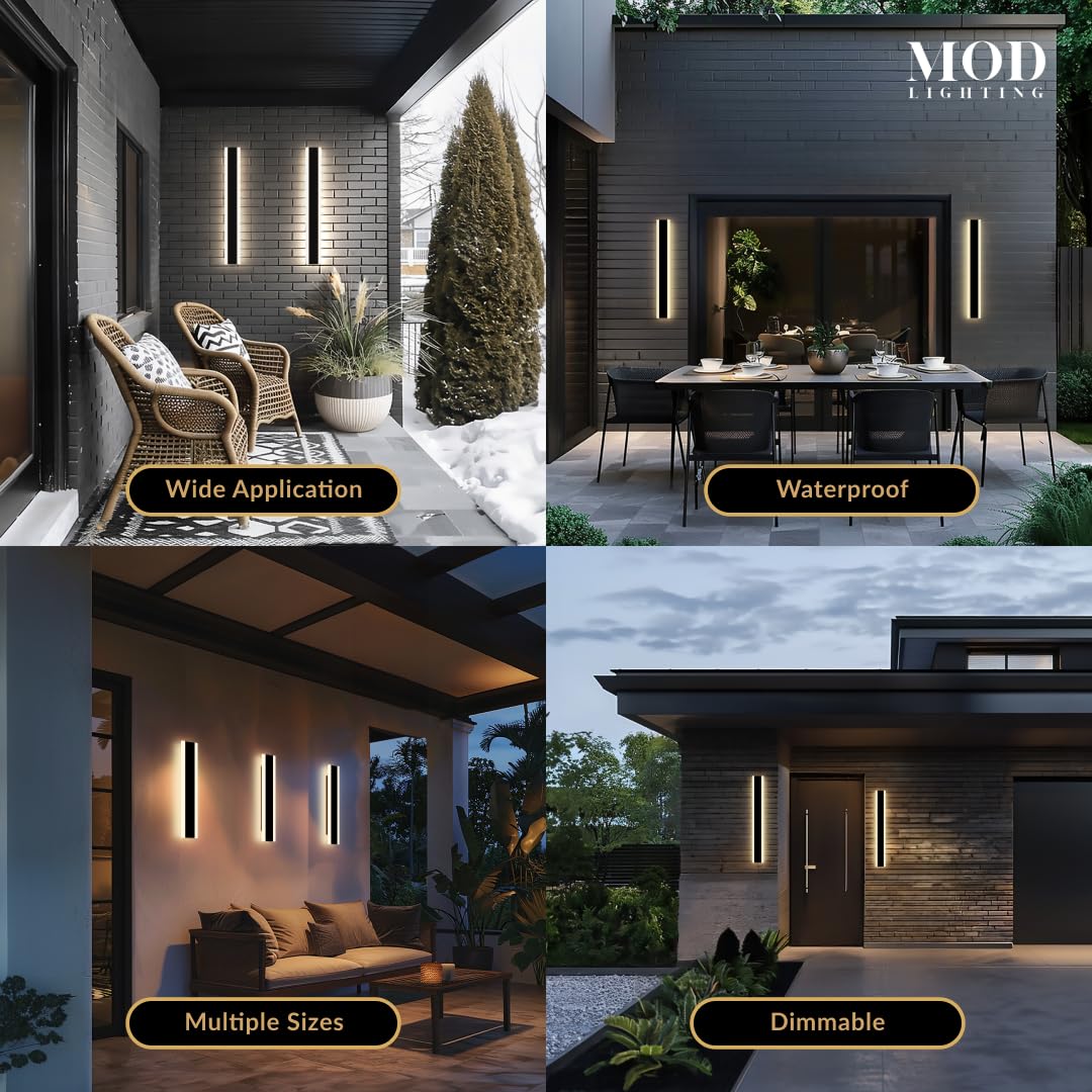 Q: What are the key features of the MOD LIGHTING Haylen outdoor wall light?A: The MOD LIGHTING Haylen outdoor wall light features a waterproof design with an IP65 rating, making it durable against rain and snow. It is dimmable with a remote control, offering three color temperatures (3000K, 4500K, 6000K) and a memory function to save your preferred settings. It is easy to install with a step-by-step guide and comes with 24/7 support.