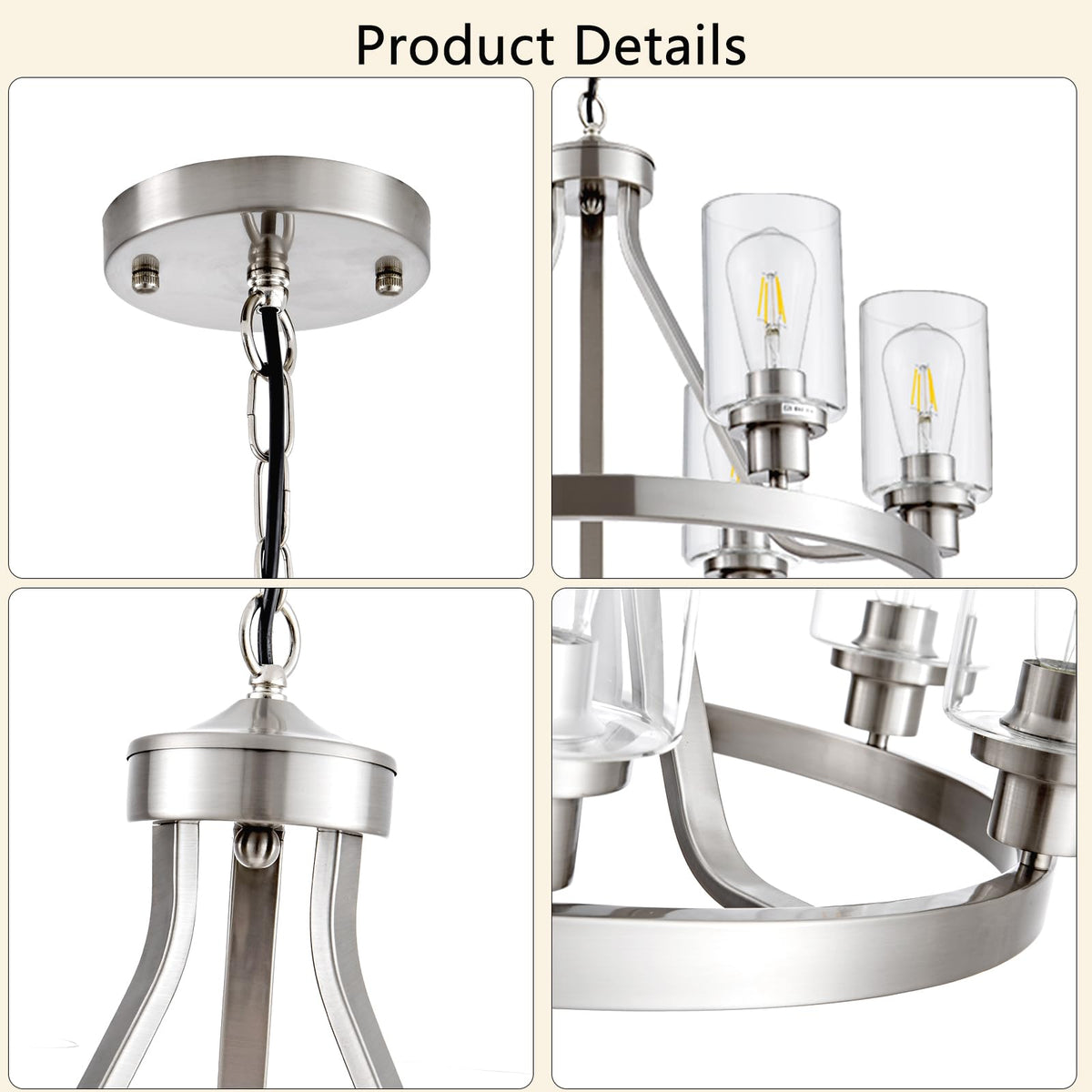 - Stylish Design: Featuring a brushed nickel glass shade, this chandelier enhances the aesthetic of your home decor, making it an ideal choice for dining rooms, living areas, or entryways.