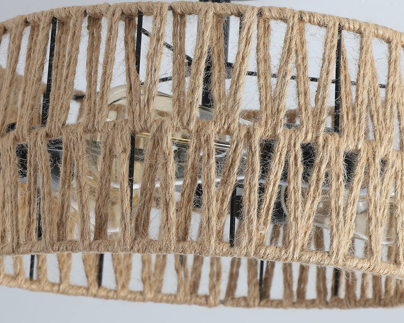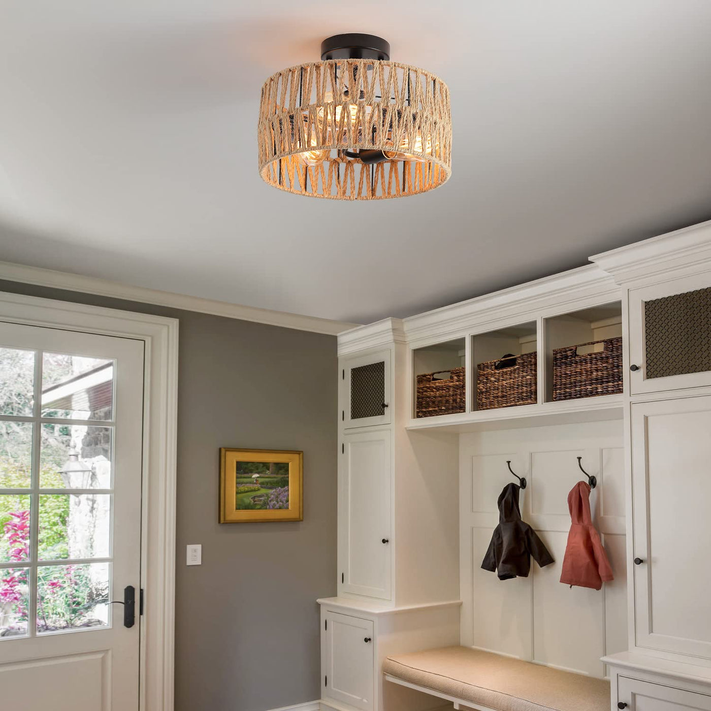 Hchunqjor 3-Light Coastal Woven Flush Mount Light Fixture Boho Rustic Hemp Rope Drum Semi Flush Mount Ceiling Light For Hallway