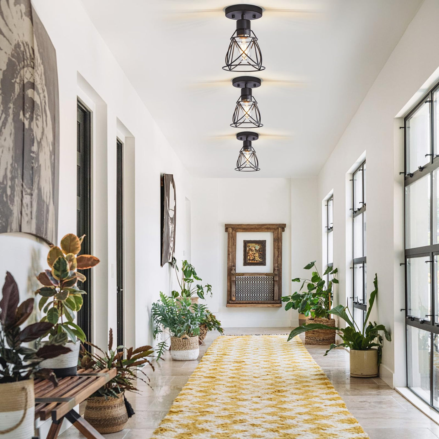 1, Hdasic 1-Light Kitchen Lighting Fixtures Ceiling Combines A Black Canopy With A Unique Matel Cage Shade That Exudes Vintage Charm. 2, Hdasic Kitchen Ceiling Light Dimensions Are 5.5'' L And 7.84'' H, Suit For Kitchen, Hallway, Foyer, Entryway, Bedroom, Dining Room, Living Room, Farmhouse, Etc, Even Suitable For Humid Areas. 3, Hdasic Black Ceiling Light Fixtures Is Crafted With Ul-Certified, Ceramic Scoket And Wires, Made Of Metal Materials. The Surface Of The Light Fixtures Ceiling Mount Is Painted And Rust-Proofed To Give A More Textured Appearance. 4, Hdasic Farmhouse Ceiling Light Is Compatible With Led Bulbs, Cfl Bulbs, Halogen Bulbs, Fluorescent Bulbs And Incandescent Bulbs (Max.60W/Each, Bulb And Switch Not Included). If You Need To Dim The Lights, Please Choose Bulbs And Switches With Dimming Function.