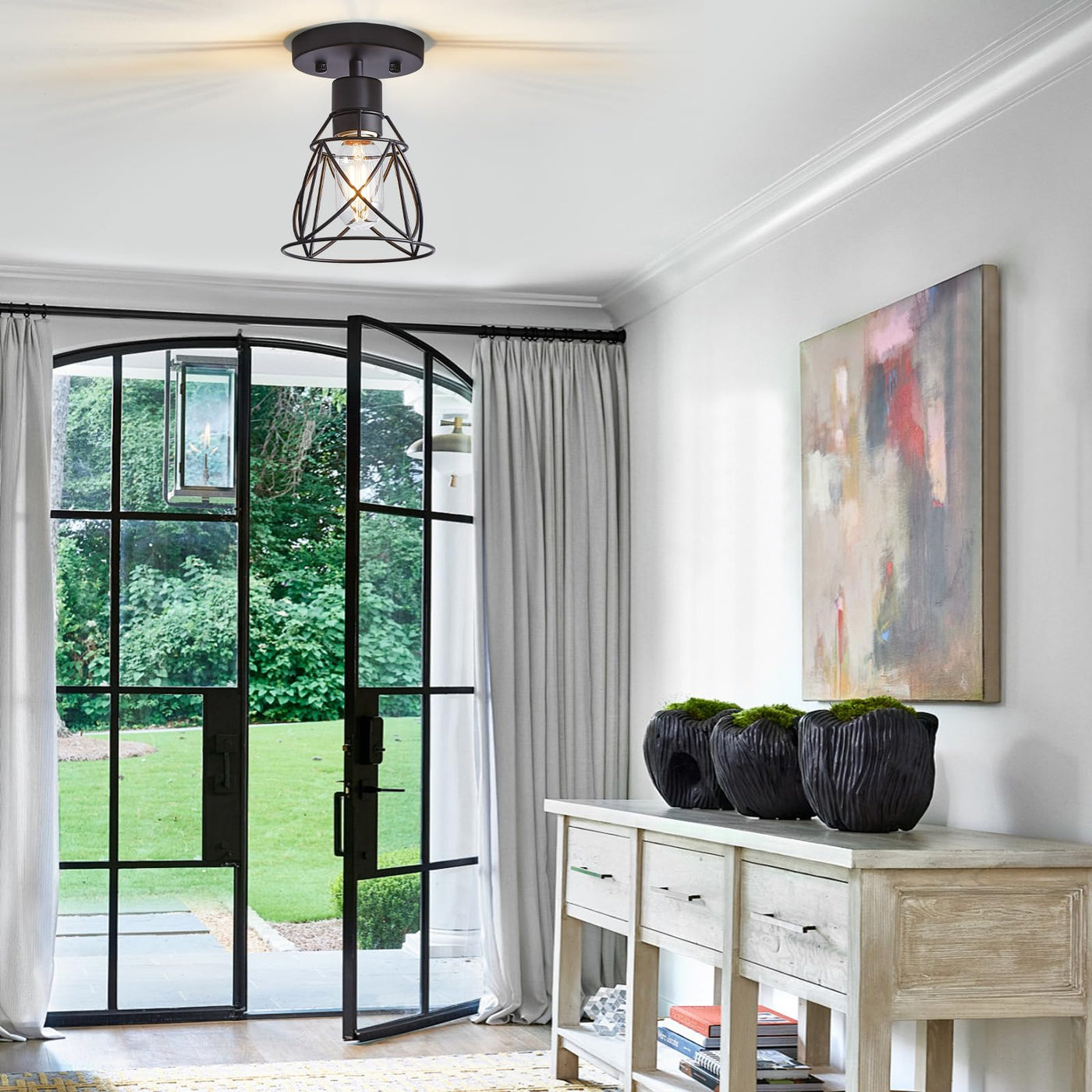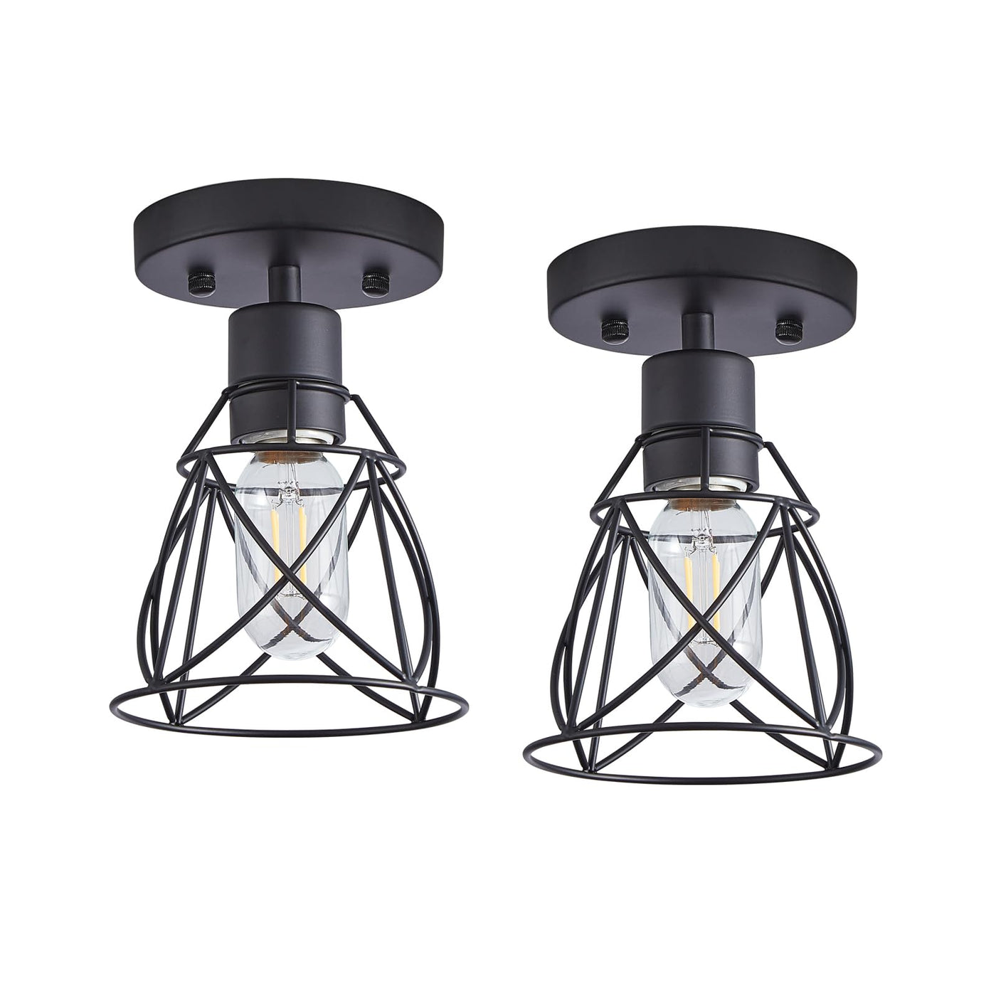 Hdasic 1 Light Semi Flush Mount Ceiling Light, Rustic Farmhouse Matte Black Kitchen Lighting Fixtures Ceiling With Metal Cage Sh
