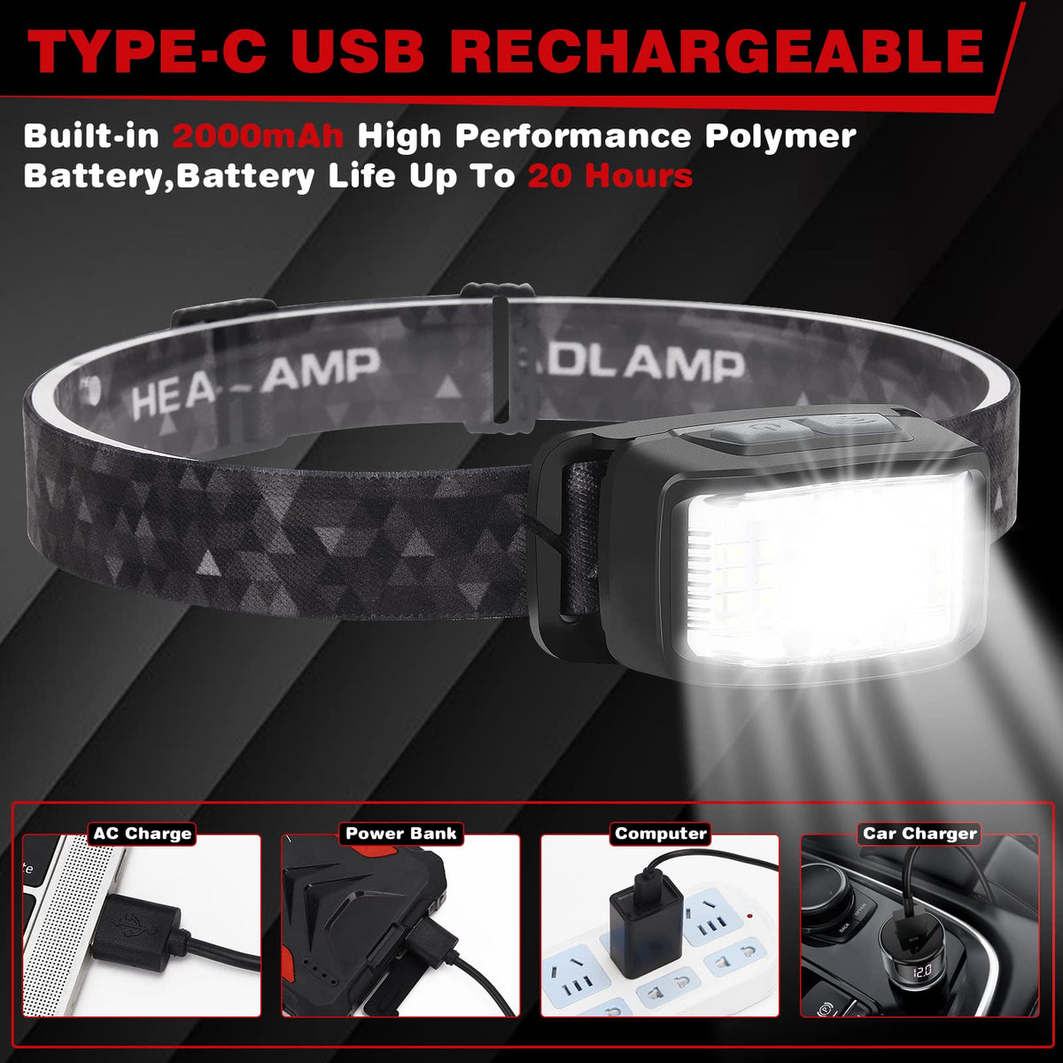 Headlamp Rechargeable,2 Pack 2000 Lumen Ultra Bright Led Headlamp,16 Modes Motion Sensor Head Lamp,Waterproof Lightweight White Red Led Flashlight For Camping,Cycling,Running,Headlamps For Adults