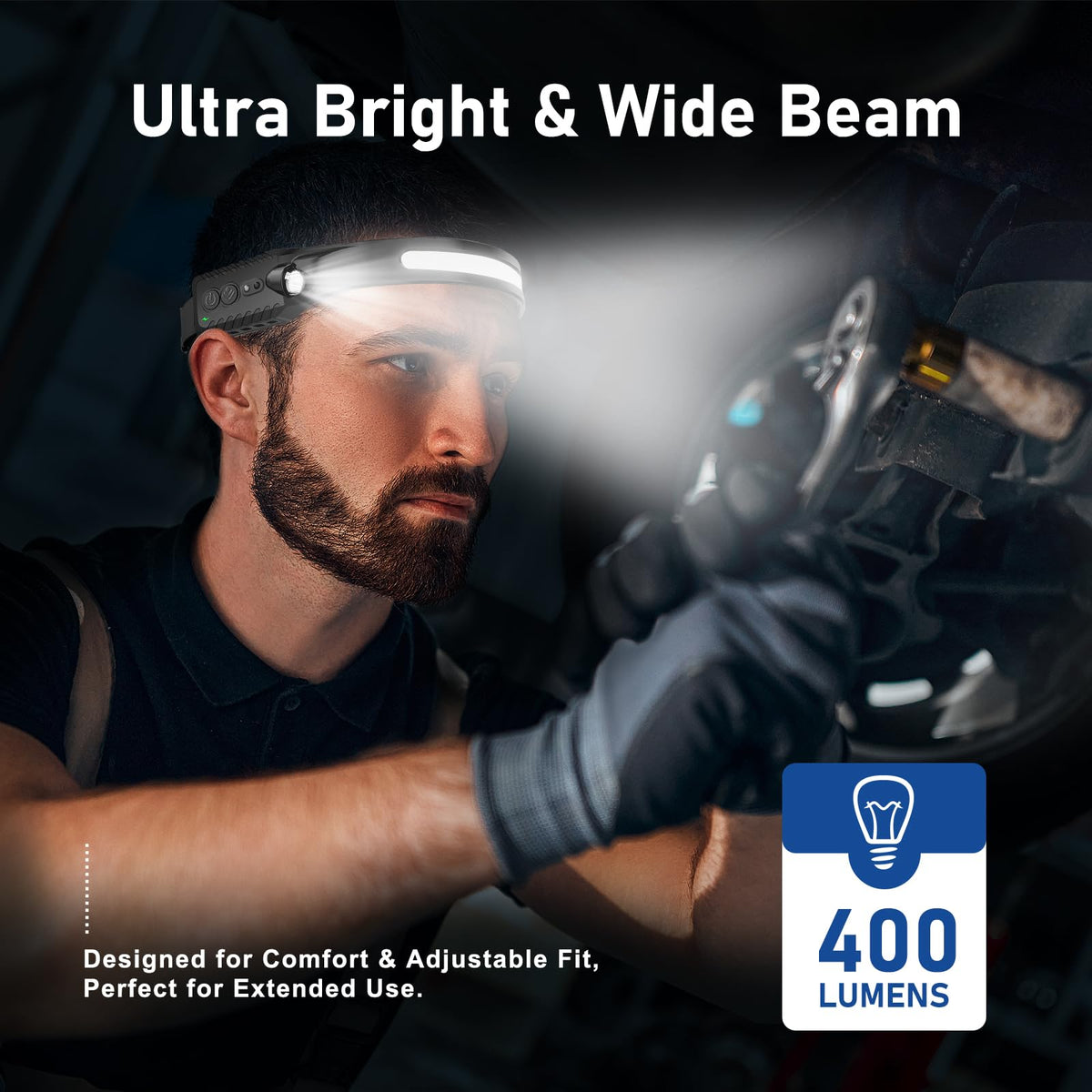 - Durable & Waterproof Construction: Built to withstand the toughest conditions, our waterproof headlamp offers reliable performance in any weather. With a super bright 400-lumen output, this headlamp is your go-to for any outdoor adventure, providing unmatched brightness even in the dimmest environments.