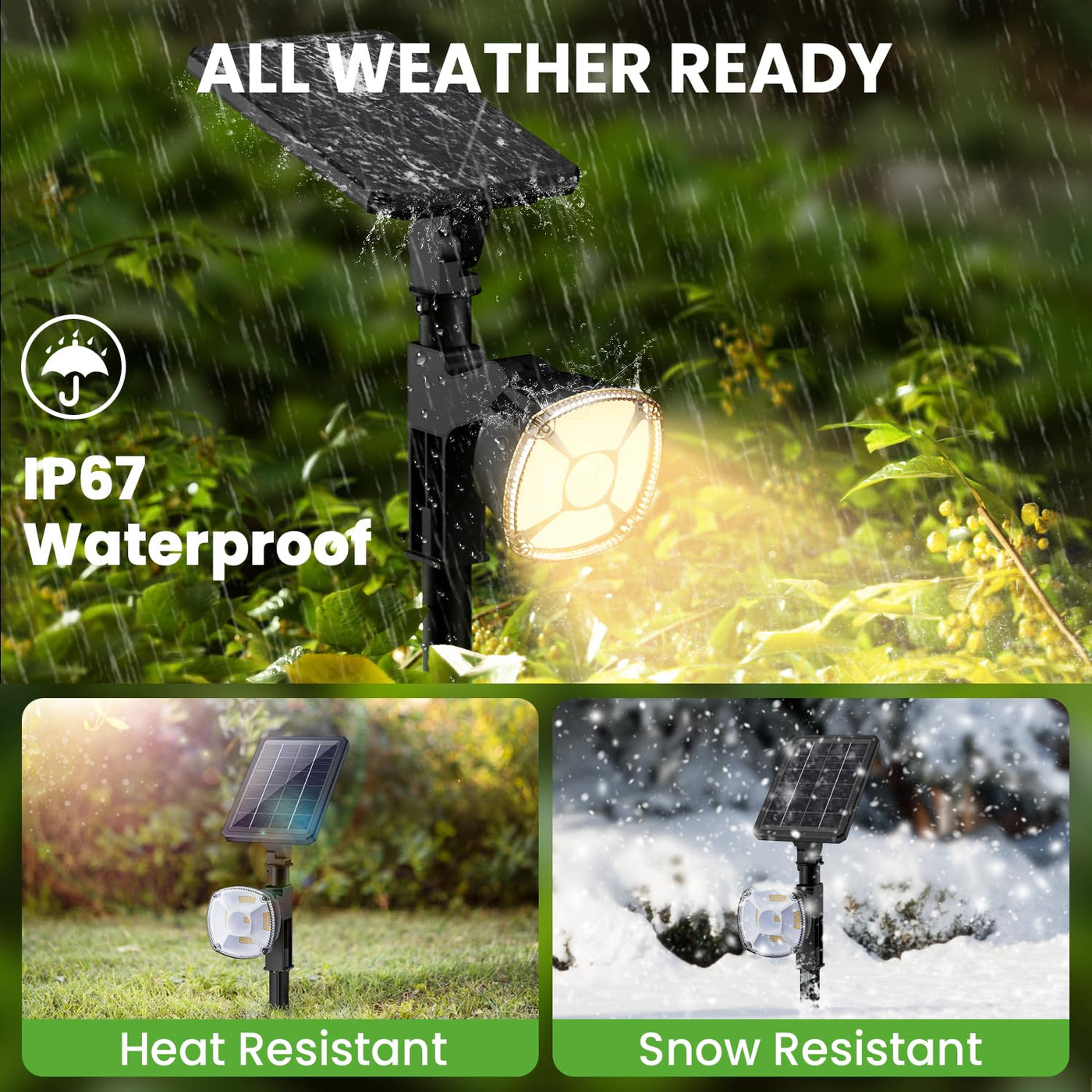Q: Are these solar lights waterproof and suitable for all weather conditions?A: Yes, these solar lights have an IP67 waterproof rating, making them highly resistant to rain, snow, frost, and heat exposure. They are designed for multi-season outdoor use, ensuring durability in various weather conditions.