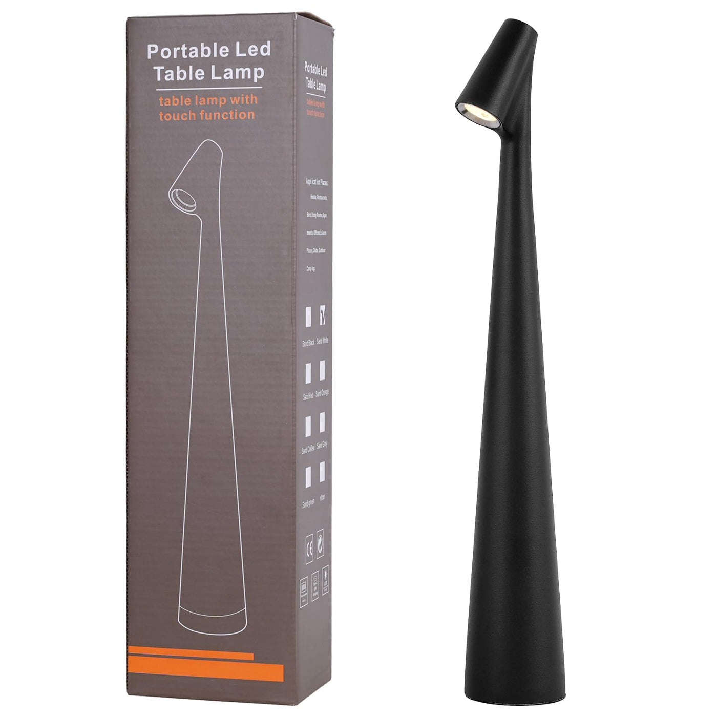 Hebangya Cordless Small Table Lamps,3 Levels Brightness Portable Desk Lamp,Rechargeable Battery Lights For Outdoor, Restaurant, Bedside, Baby Night Light,Gifts(Black)