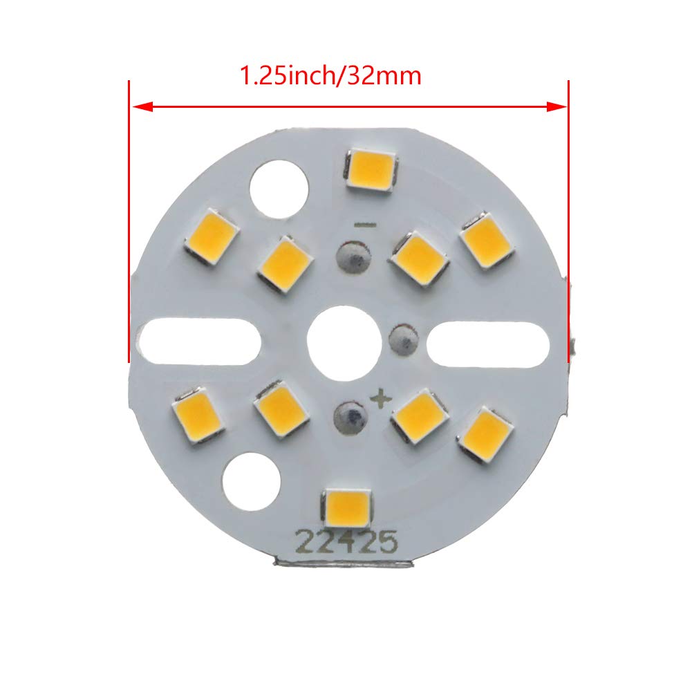 Hegebeck Led Chip Bulbspecifications:Dimension: Luminous Flux: 120Lml; Power: 5W; Luminous Angle:120; Voltage: 15-17V; Current: 300Ma; Dia: 32Mm/1.25 Inches; Color Temperature: 3000K; Chip Type: 5730Material: Made Of High Quality Aluminum Board, Durable For Daily Use,Low Heat Generatingdescription:1.Light Weight And Stable Performance. High Quality And Super Bright Led Bulbs.2.Enviroment-Friendly Products, Safe And Reliable. Non-Toxic, Non-Radiation And Low-Carbon.Note:The Led Lamp Board Must Be Powered By Constant Current Led Driving Power Supply, And The Output Parameters Of The Power Supply Are Consistent With Those Of The Lamp Board;The Led Lamp Plate Must Be Installed On The Aluminum Radiator,Otherwise The Lamp Plate Is Easy To Burn Out At High Temperature.Package Content:5 Pcs X Led Chip Bulb