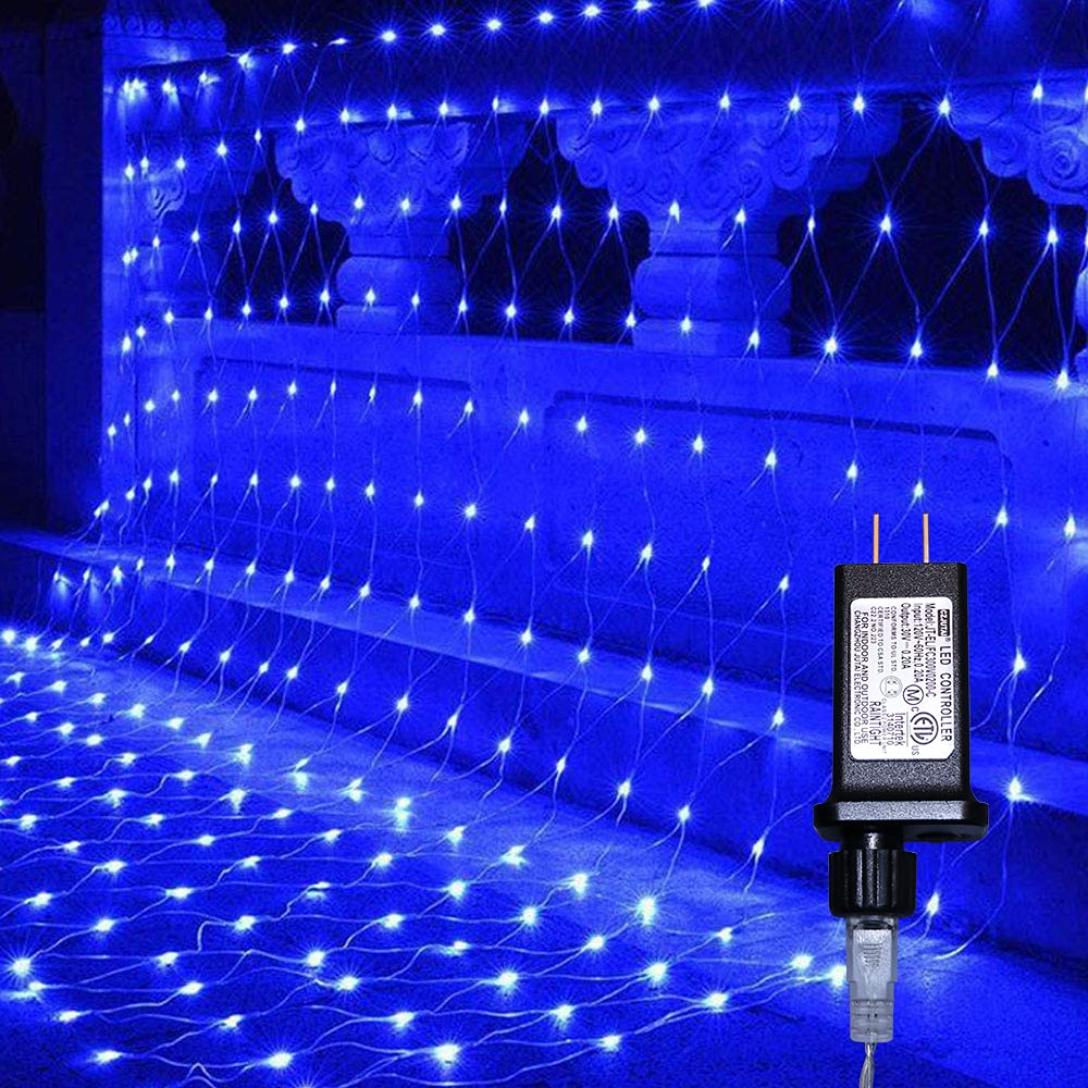 Hekation Waterproof Net Mesh String Lights, 200 Blue Bubbles, 8 Modes, 9.8X6.6 Ft