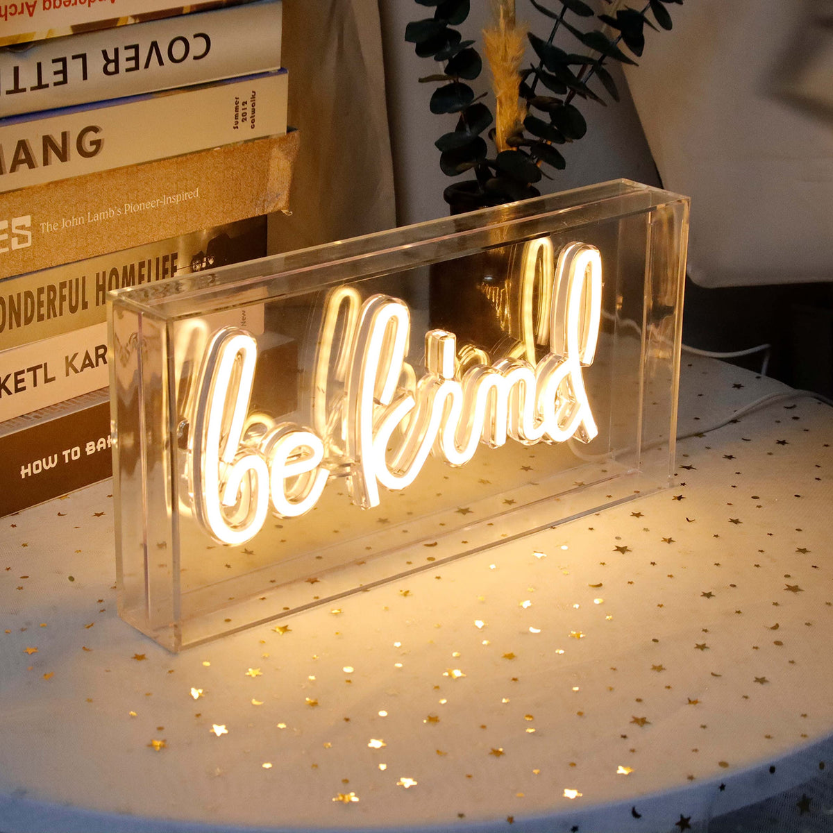 - **Eye-Catching Design**: The Be Kind Neon Sign radiates a warm white glow, making it a stunning centerpiece that enhances any decor style, whether for a girl’s room, a festive beach party, or a chic cocktail lounge.