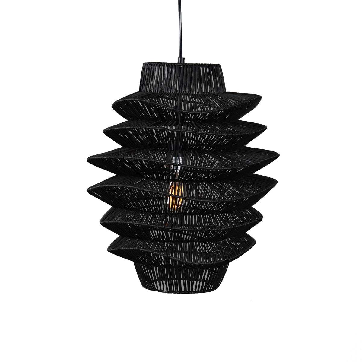 Helix 16 Inch Pendant Light, Woven Rattan, Iron, Black