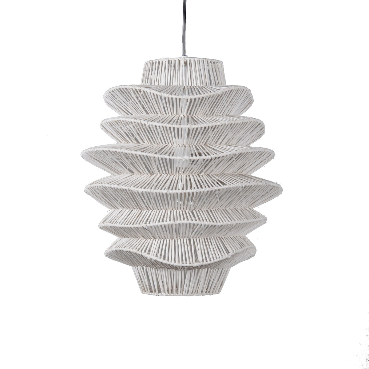 Helix 16 Inch Pendant Light, Woven Rattan, Iron, White