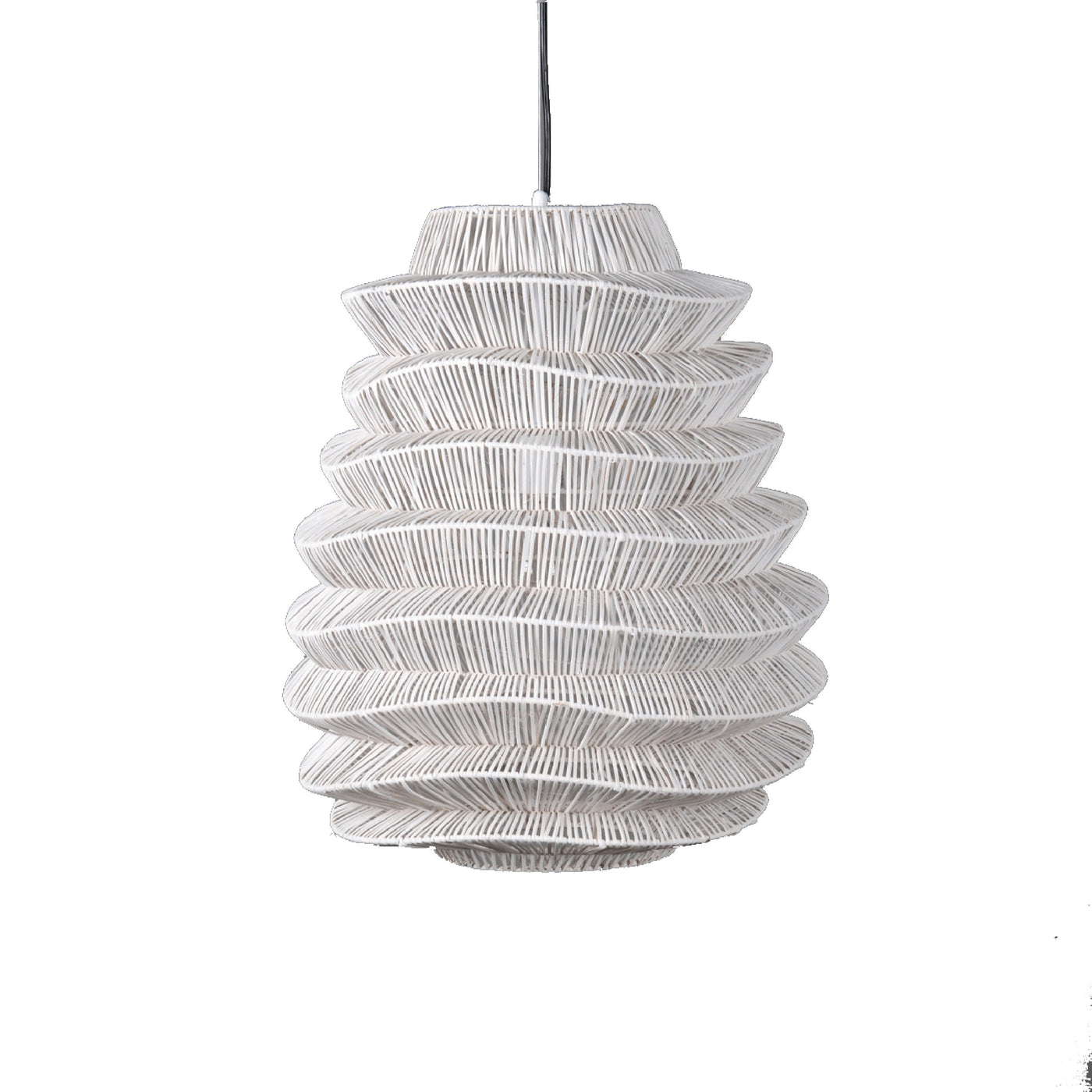 Helix 20 Inch Pendant Light, Woven Rattan, Iron, White