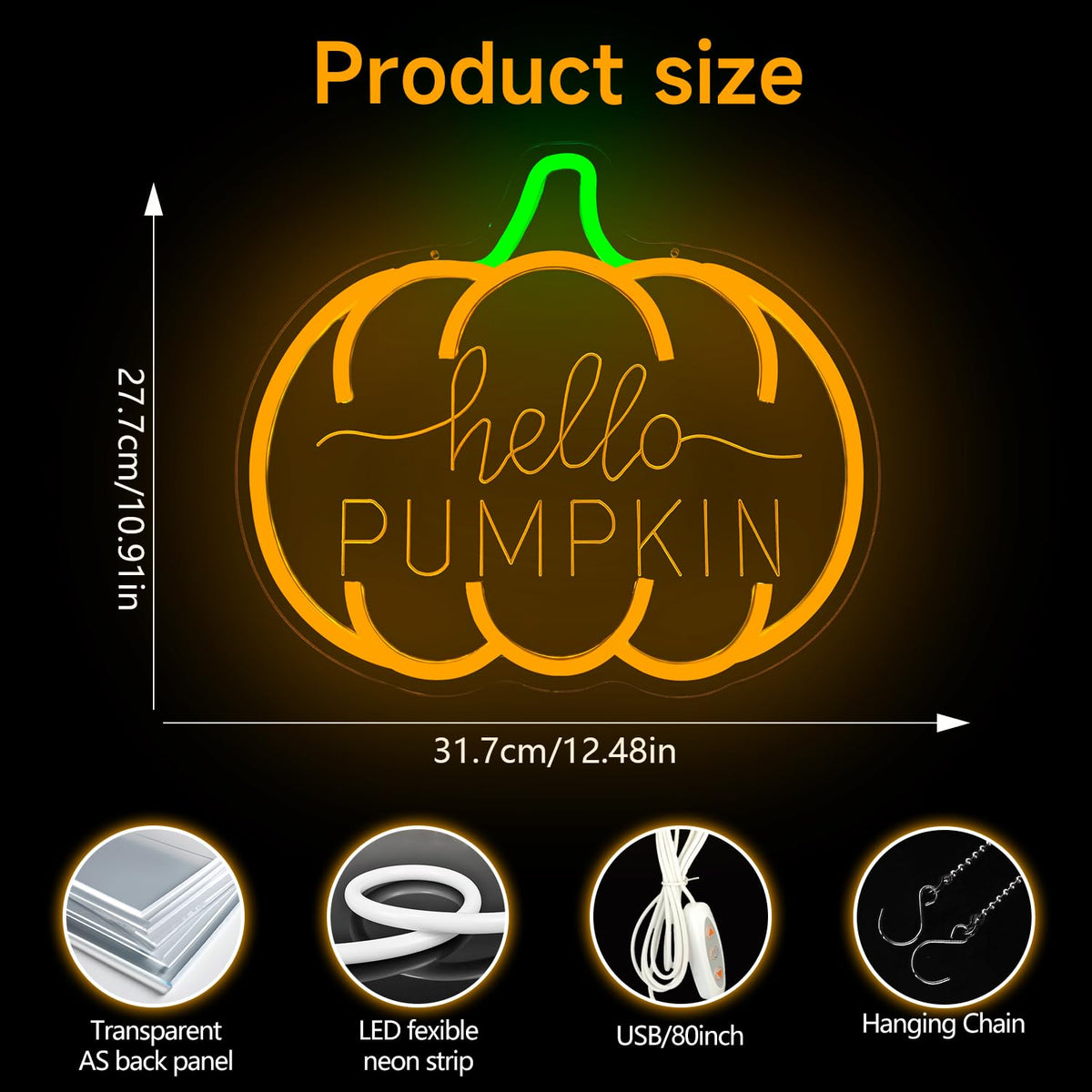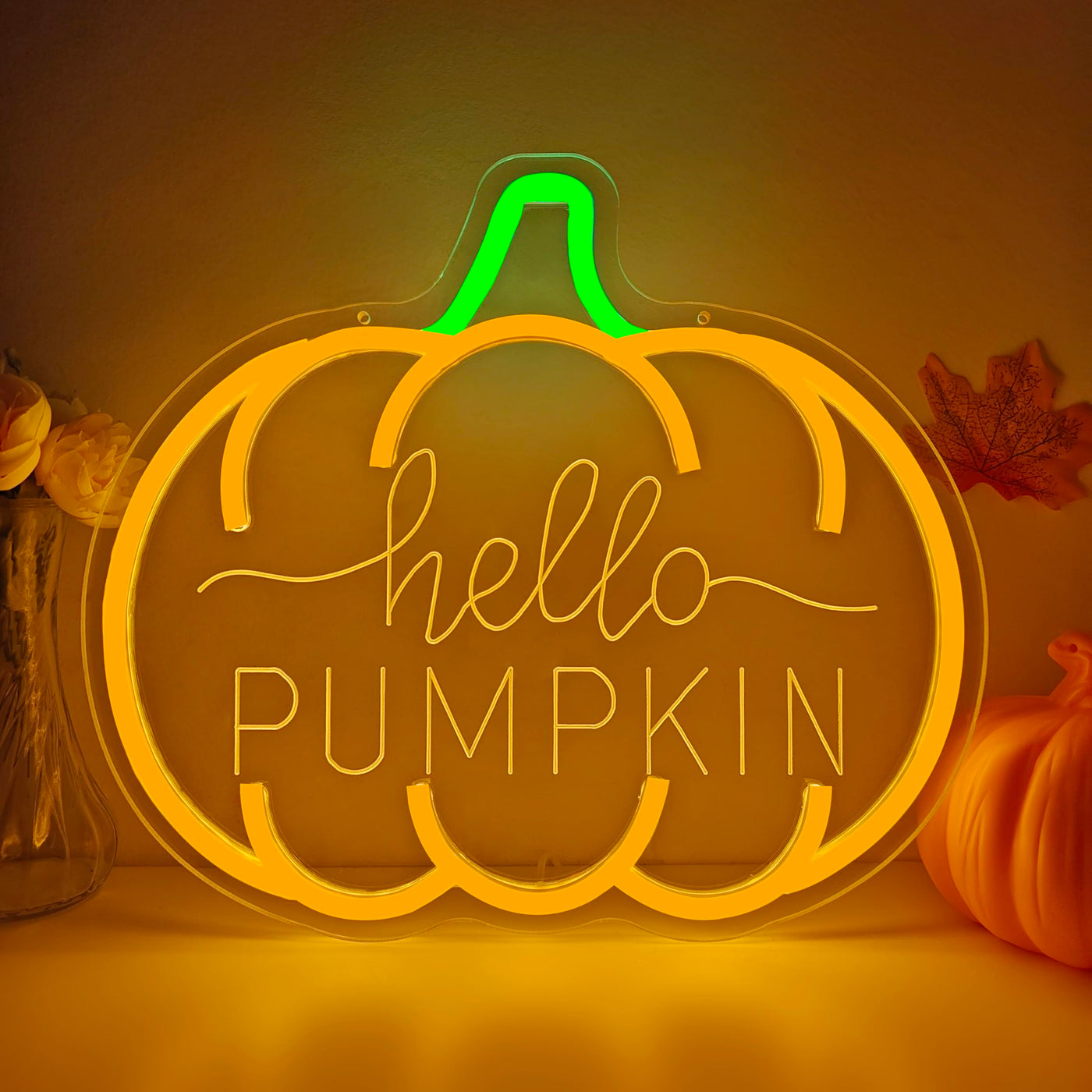 Hello Pumpkin Neon Sign For Wall Decor Fall Led Sign Dimmable Autumn Neon Light Up Sign For Bedroom Wall Fall Thanksgiving Decorations Party Home Front Door Harvest Season Wall Art Holiday Gift