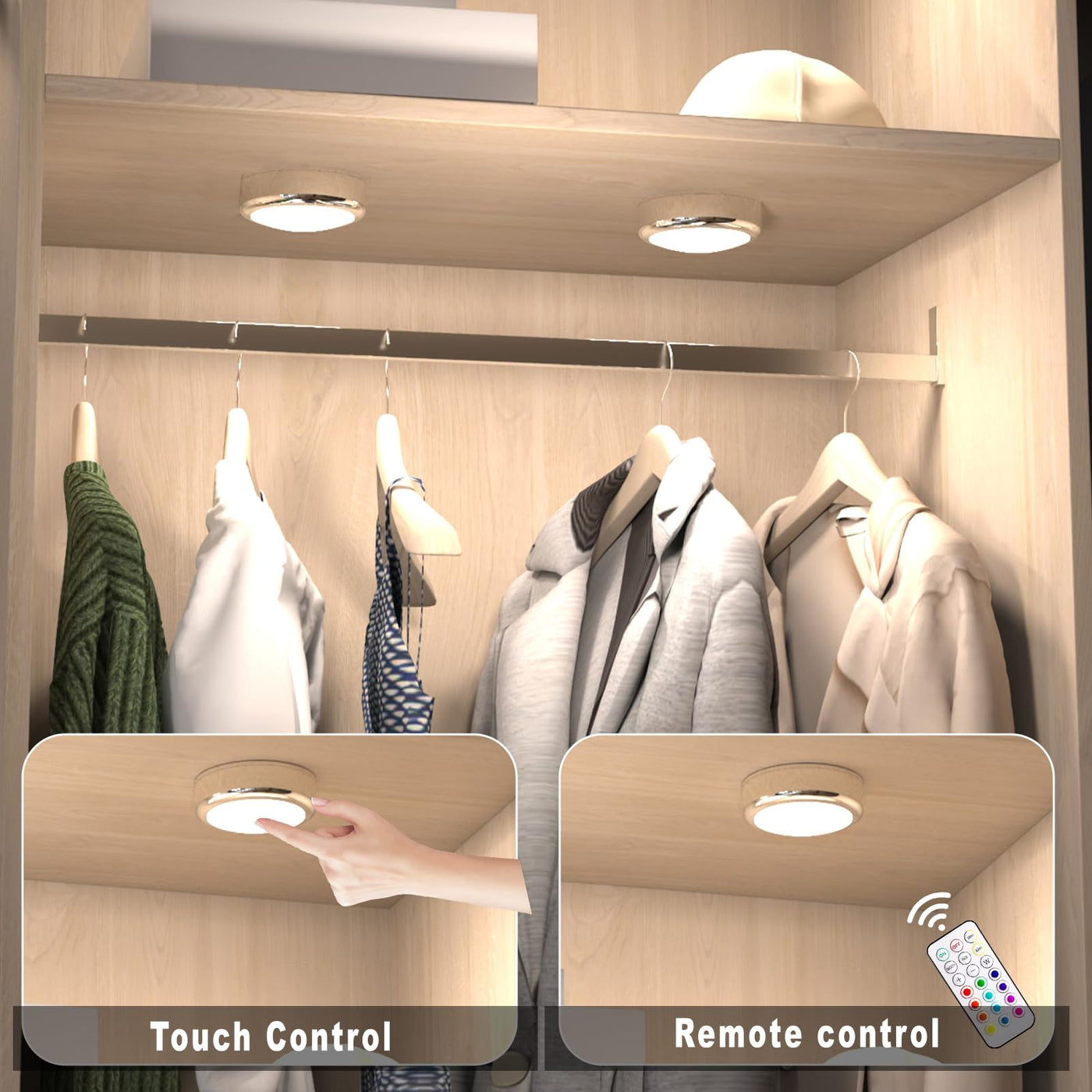 Helplex Led Puck Lights With Remote, Battery Powered Push Lights, Dimmable Under Cabinet Lighting, Wireless Under Counter Lights