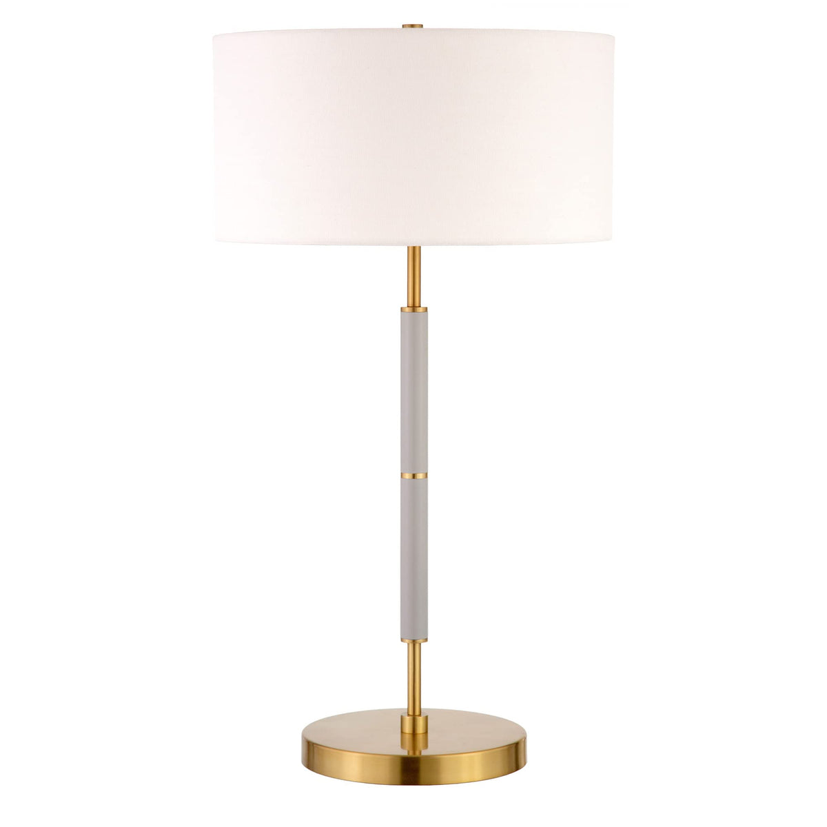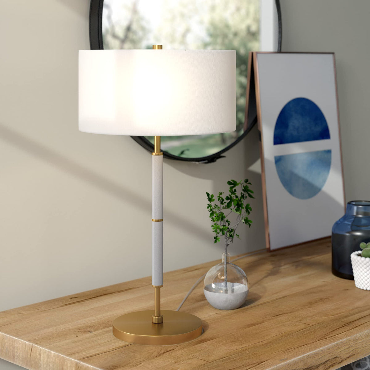 Add visual interest to any room with this two-toned contemporary table lamp by Henn&Hart. Designed to complement modern aesthetics, this lamp features on-trend neutral colors paired with lustrous metallic accents, making it a stylish addition to your décor. The generous French drum shade not only enhances the lamp's elegance but also provides ample space for two bulbs, ensuring bright illumination wherever it's needed.