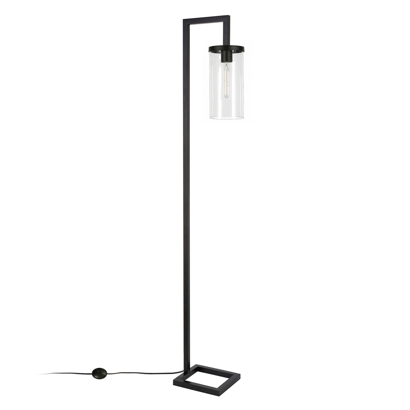 Illuminate your space is clean, modern style with this versatile floor lamp. Crafted of steel in a neutral metallic finish, this lamp strikes a clean-lined hook-shaped silhouette on an open square base. Suspended from its arced top, a glass cylinder shade diffuses ambient light as its dispersed throughout your space.