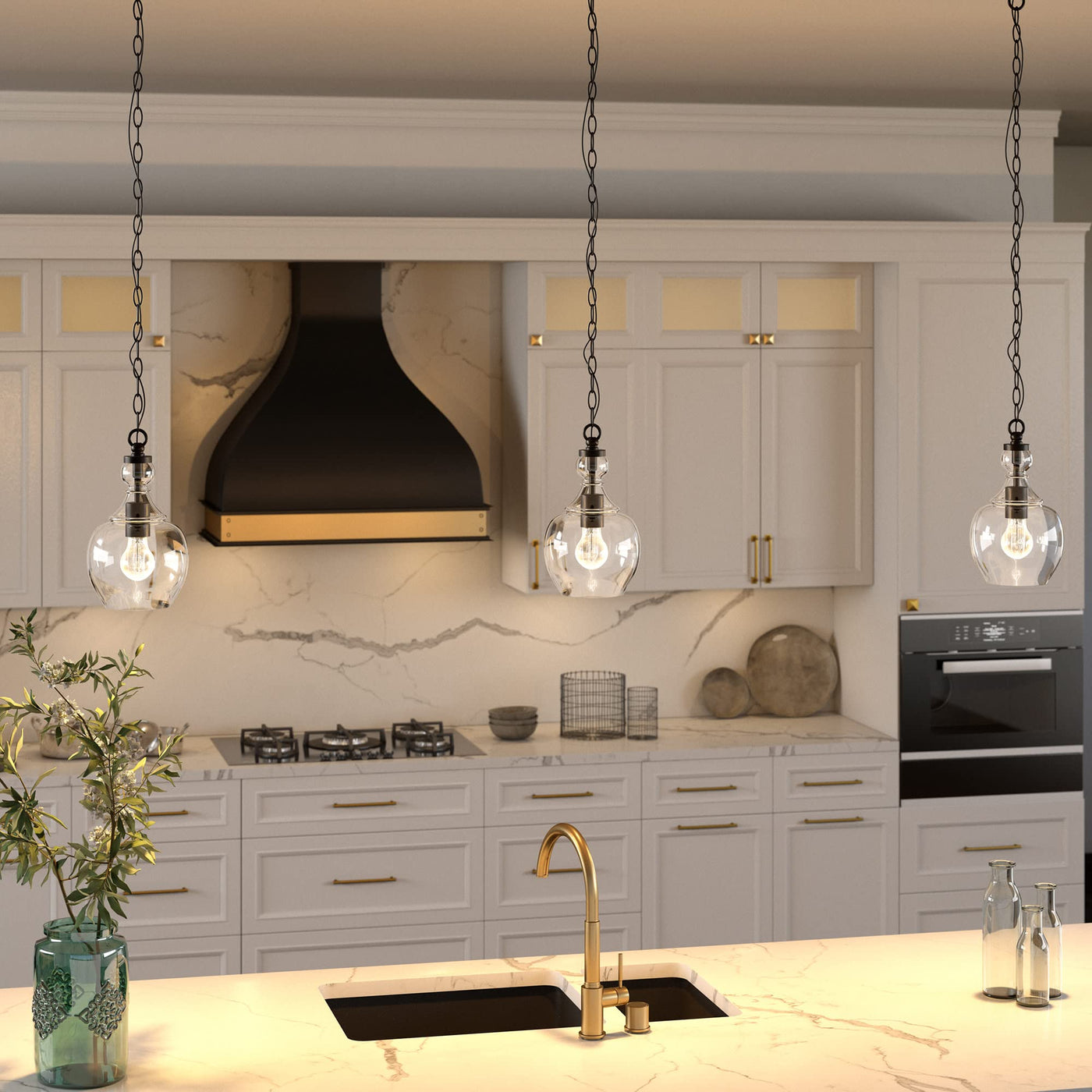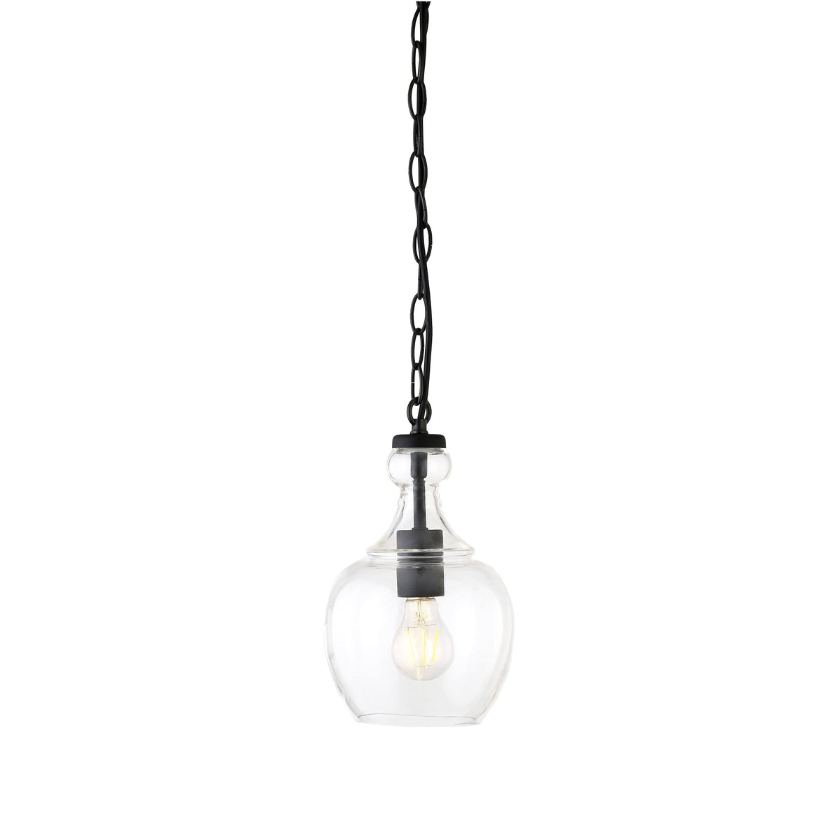 Henn&Hart 7" Blackened Bronze Pendant Light With Clear Glass Shade For Kitchen & Living Room
