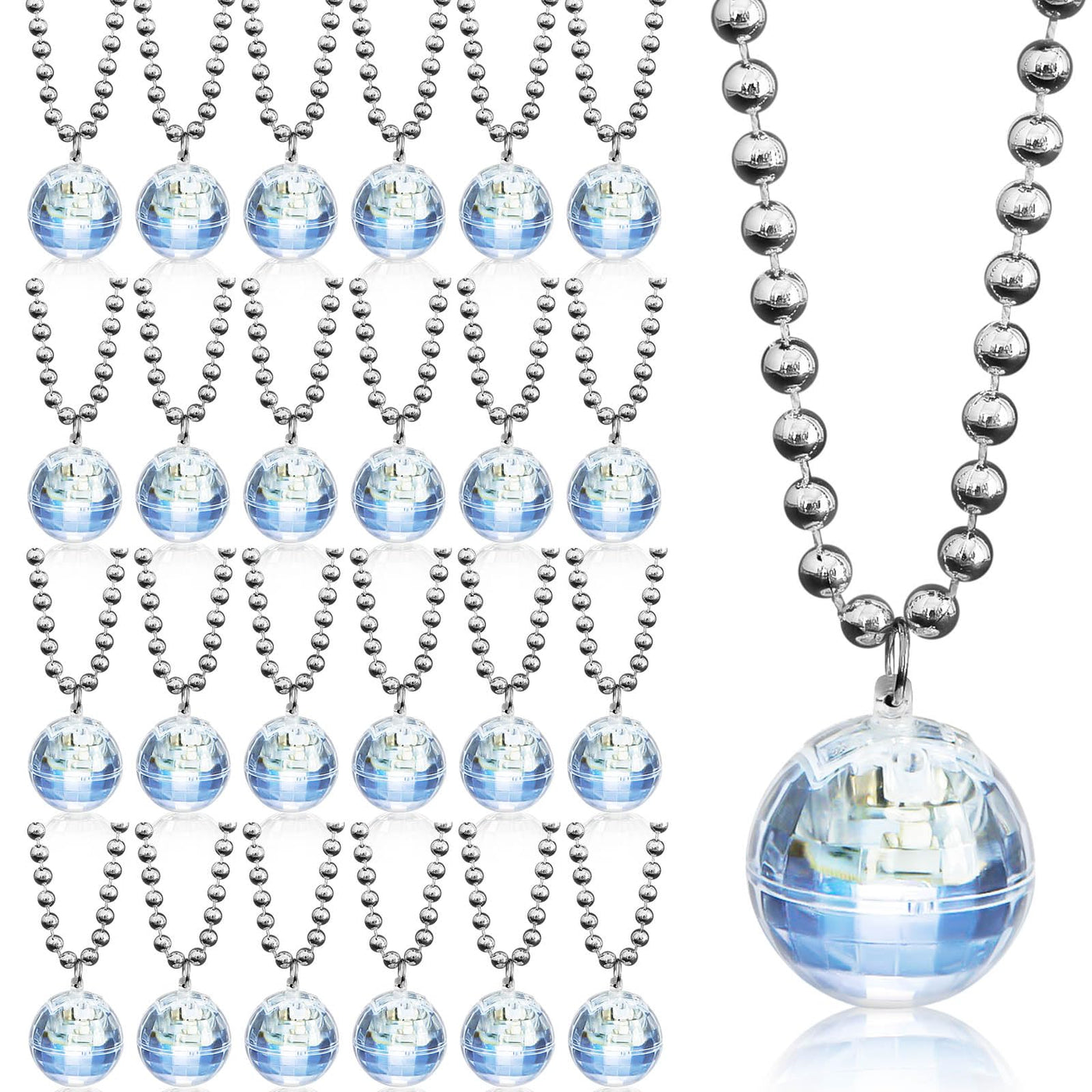 Henoyso LED Disco Ball Necklaces - 24 Pcs Light Up Beads for Mardi Gras & Parties - Silver, White Light