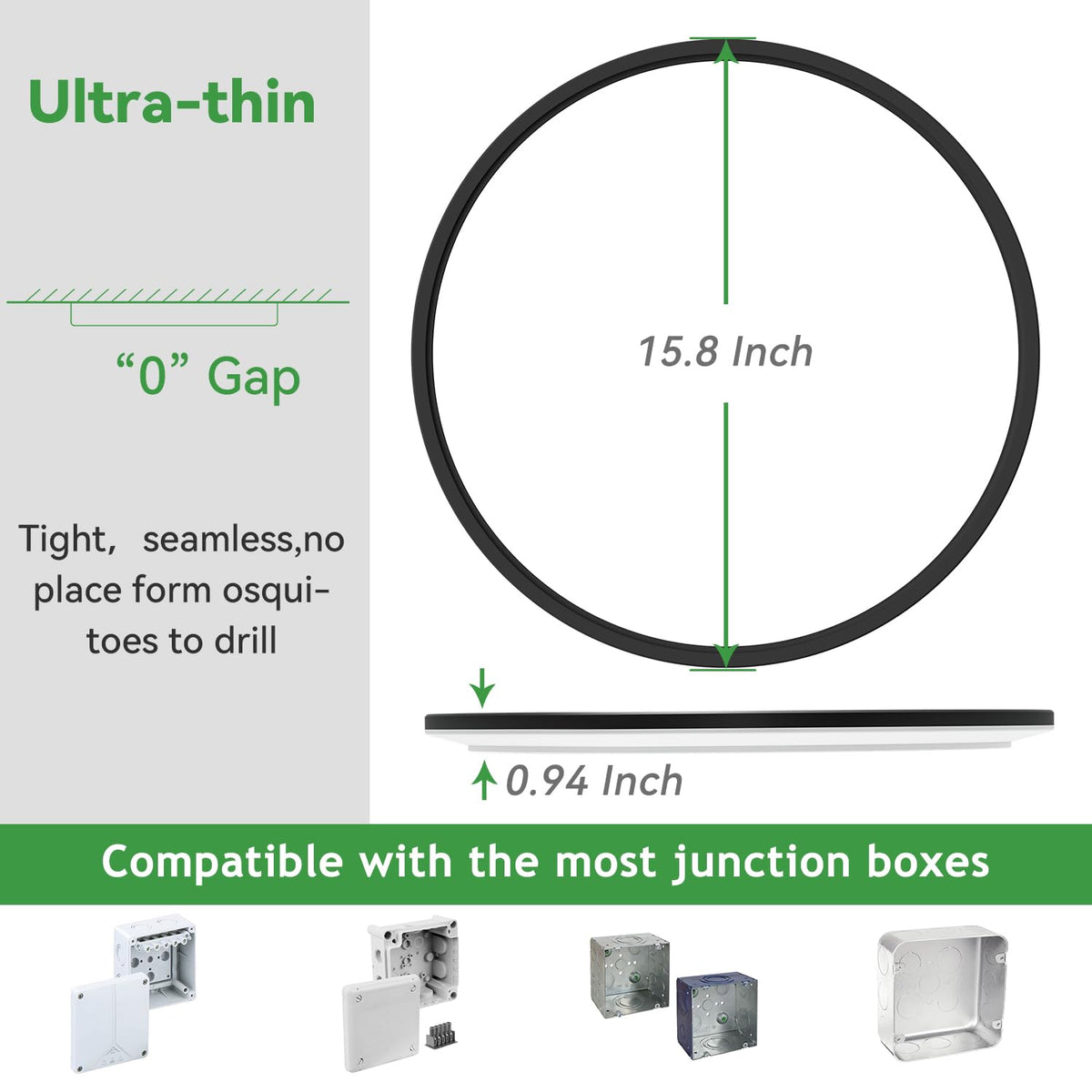 hepside 15.8 Inch Dimmable Flush Mount Ceiling Light Fixture, 3CCT 3000/4500/6000K, Black, 2-Pack, Plastic,