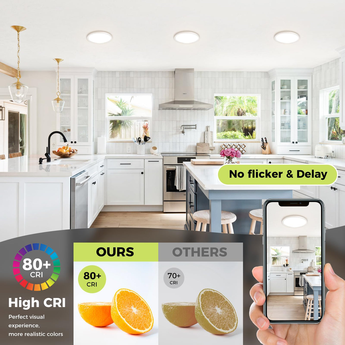 Q: How does the color rendering index (CRI) affect lighting quality?A: The ceiling light has a color rendering index of over 85, which means it can present true and vivid colors. This helps create a comfortable lighting environment and protects the eyes from glare.