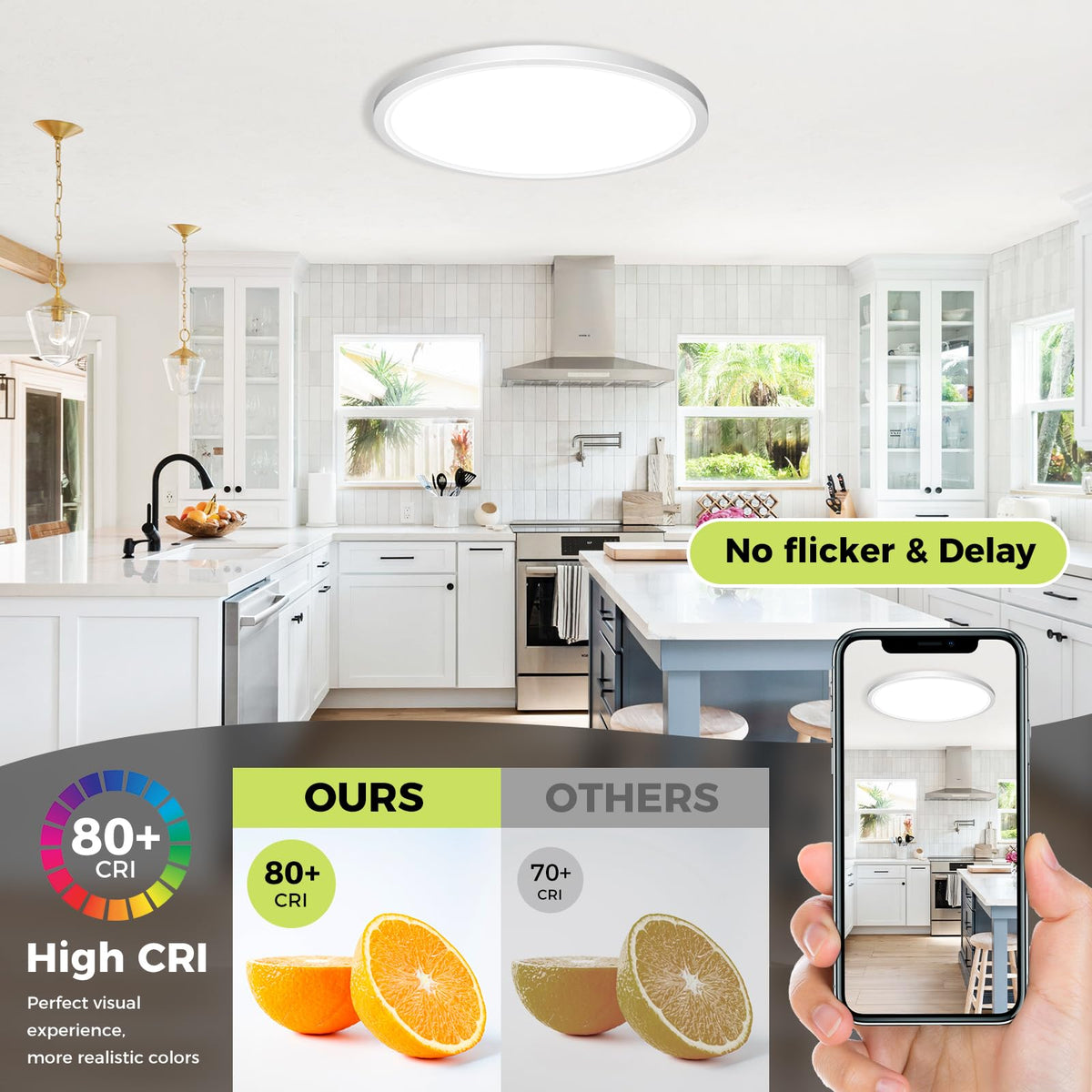 Ultra-thin Design: With a thickness of only 0.7 inches, this ceiling light is 15% thinner than similar models, allowing for easy installation and a modern look.