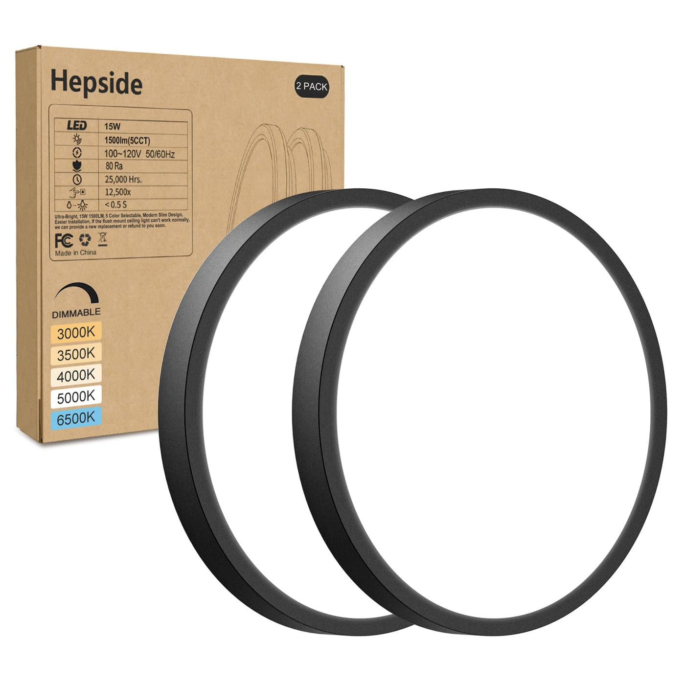 Q: What are the available color temperature settings for the hepside LED Flush Mount Ceiling Light?A: The hepside LED Flush Mount Ceiling Light offers five adjustable color temperature settings: 3000K, 3500K, 4000K, 5000K, and 6500K. This allows you to choose between warm and cool light based on your needs.