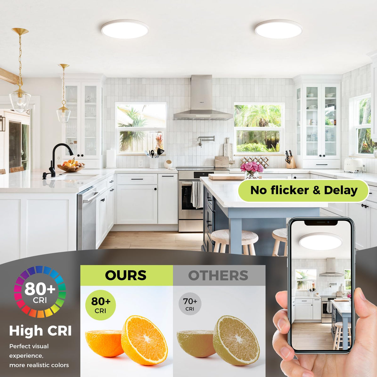 Ultra-thin Profile: At just 0.7 inches thick and 13 inches in diameter, this light is 15% thinner than similar models, allowing it to fit seamlessly into tight spaces.