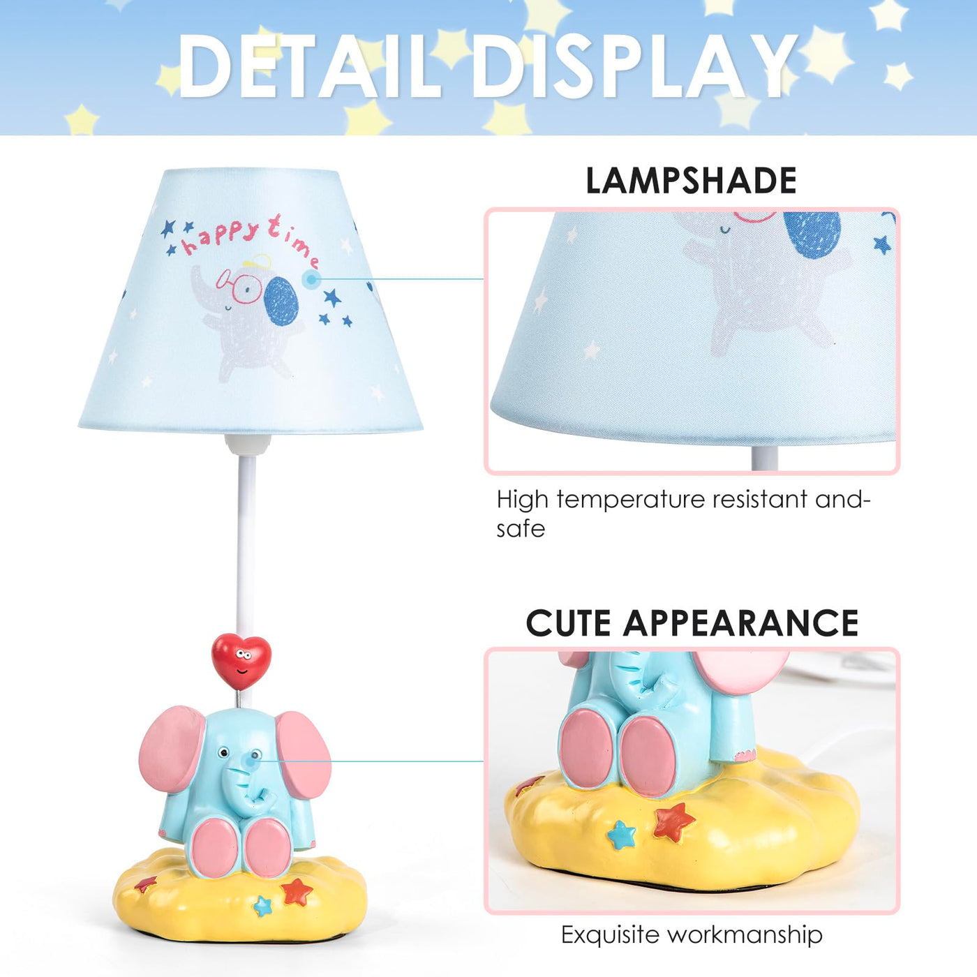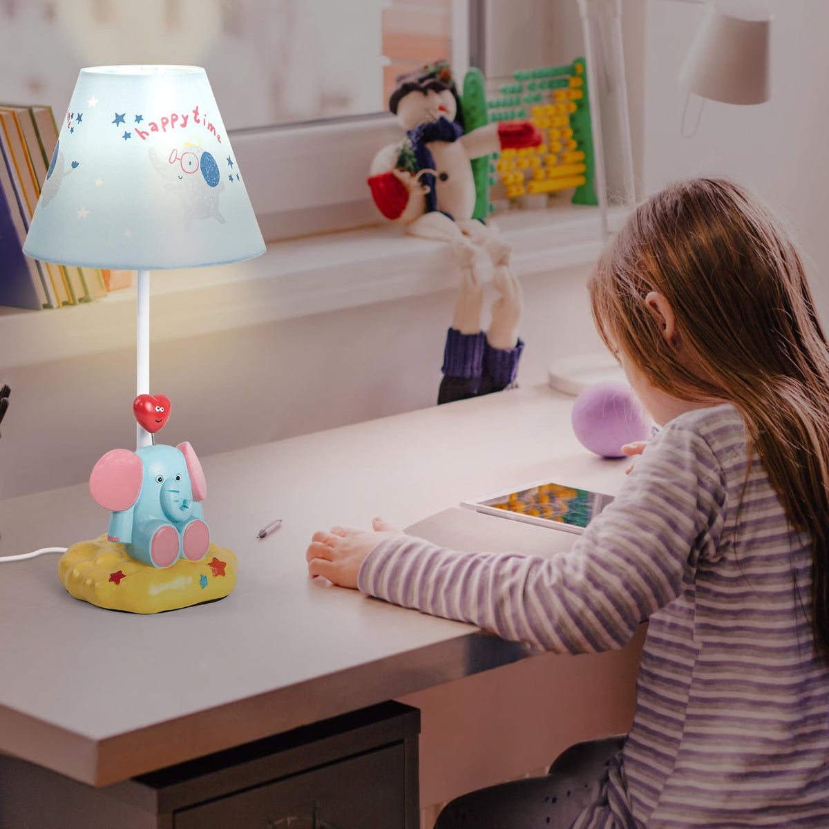 Herbestbay Kids Table Lamp, Adorable Loving Elephant Style Desk Lamp, 16 Inch Bedside Lamp Ideal For Kids Bedroom Decor, Include