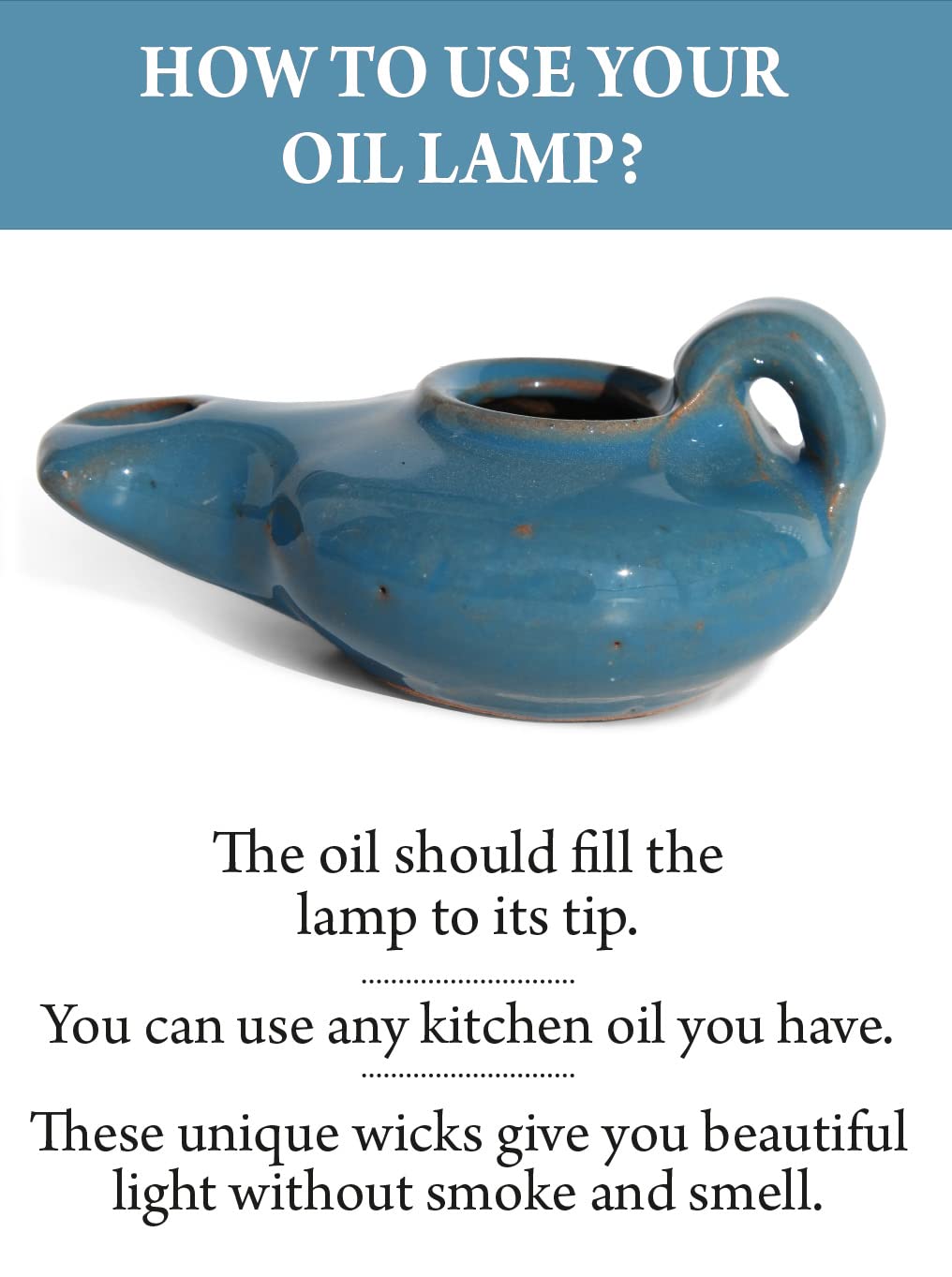 Get your Glaze Herodian Oil Lamp today and rekindle the ancient connection between light, history, and faith. includes a wick. Made in Bethlehem. Size: 4 x 3 x 1.1 inches approx. To use this oil lamp, you need any cooking oil, but the best kind is Olive Oil. Place a saucer under the lamp as seepage may occur. Note: pattern