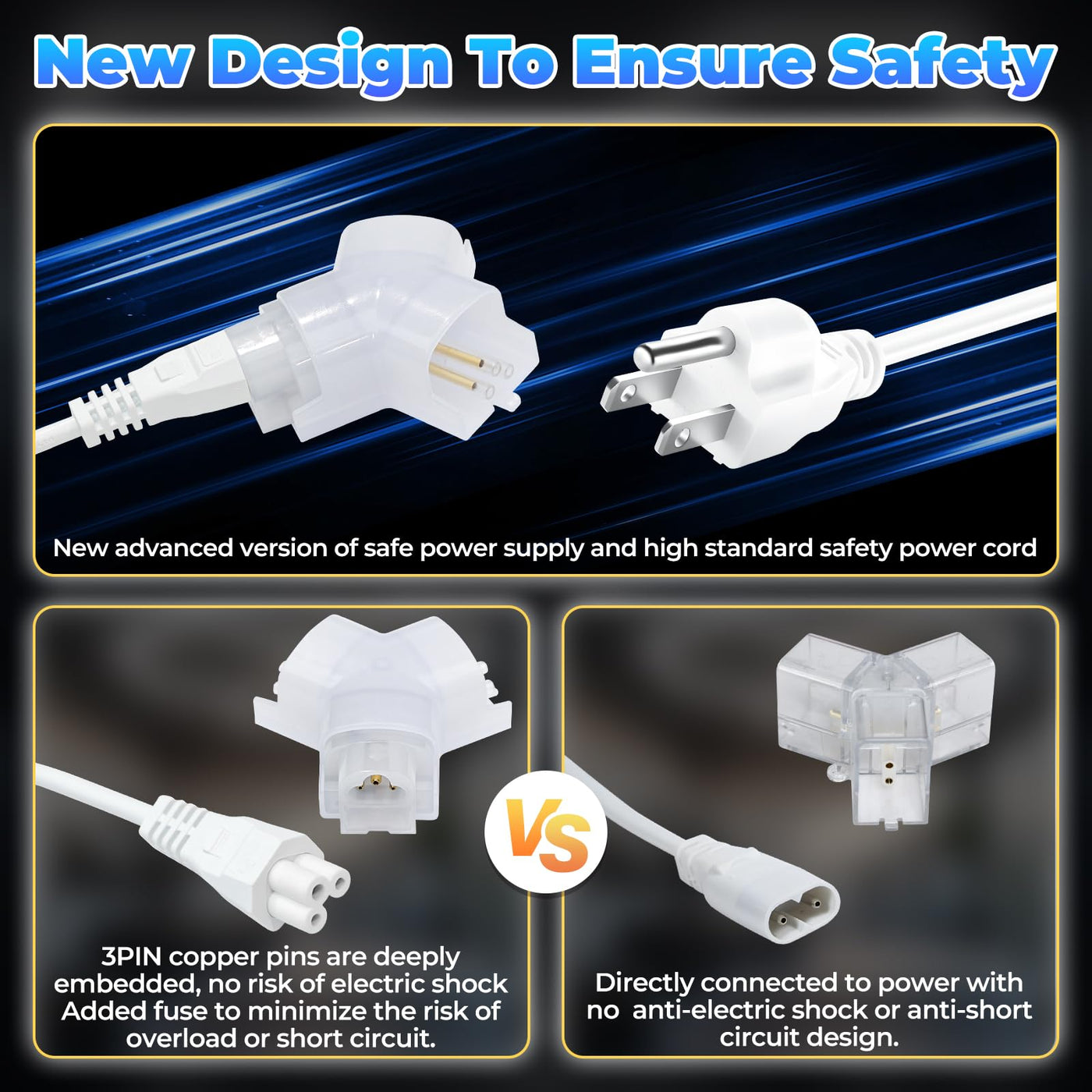Q: Are the Hexagon Garage Lights safe to use?A: Yes, these lights have a special safety design with optimized connectors and deep-set 3PIN connection pins, significantly reducing the risk of electric shock during installation.