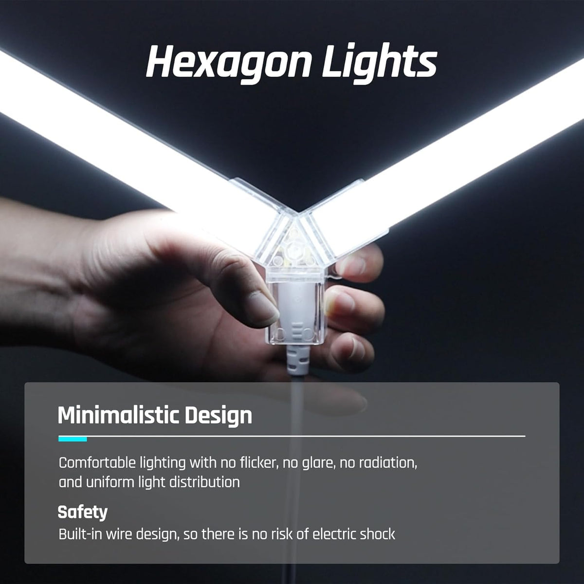 Led Shop Light This Is A Hexagon-Patterned Garage Light Led Workshop Lighting System That Can Be Mounted On The Wall And Ceiling Using Screws And Zippers. The Light Spread From The Pattern Gives You A Comfortable Visual Experience While Illuminating An Entire Garage,Bay. Which Brings The Idea Of Lighting Up Your Space To A Whole New Level. Diy Diversity Installation Effect: Tubes Can Be Installed Into Variegation Light Shapes According To Personal Preference, Creating The Perfect Variegation And Premium Ambiance For Your Space. If You'Re Looking To Light Up Your Garage, Or You Have A Shop That Needs Some Dressing Up, These Lights Are Your Best Choice. These Lights Are Extremely Popular In The Automotive Industry For Car Washes, Wrap Gift Shops, Popular In Retail Shops And Gyms. Led Garage Ceiling Lights Features: 1. The Lamp Tube Is Wider, The Light-Emitting Surface Is Larger And Brighter, Wider Range Of Lighting. 2. Super Bright:25650Lm. High-Quality Led Chips, Much Brighter. 3. High Safety Factor: Built-In Plug, Meet The Safety Certification Standards Of The U.S, It Is Difficult For Fingers To Touch The Plug. 4. The Led Shop Light Installation Is Tighter Than Other Shops And Not Easy To Loosen. 5. Diy Design, You Can Splice Different Shapes According To Personal Preferences ? Led Hexagon Lights Power: 192W(8W/Lamp Tube) ? Garage Hexagon Light Lumen: 25650Lm ?Color Temperature:6500K ? Led Garage Hexagon Light Size: 88.9*16.5*62.2Inches ? Working Temperature: -20C-50C ? Input Voltage: Ac 85-265V Noted: Kindly Read The Instructions Carefully, Since The Total Light Is Big, Please Insert The Connector Tightly Enough Before Installation.