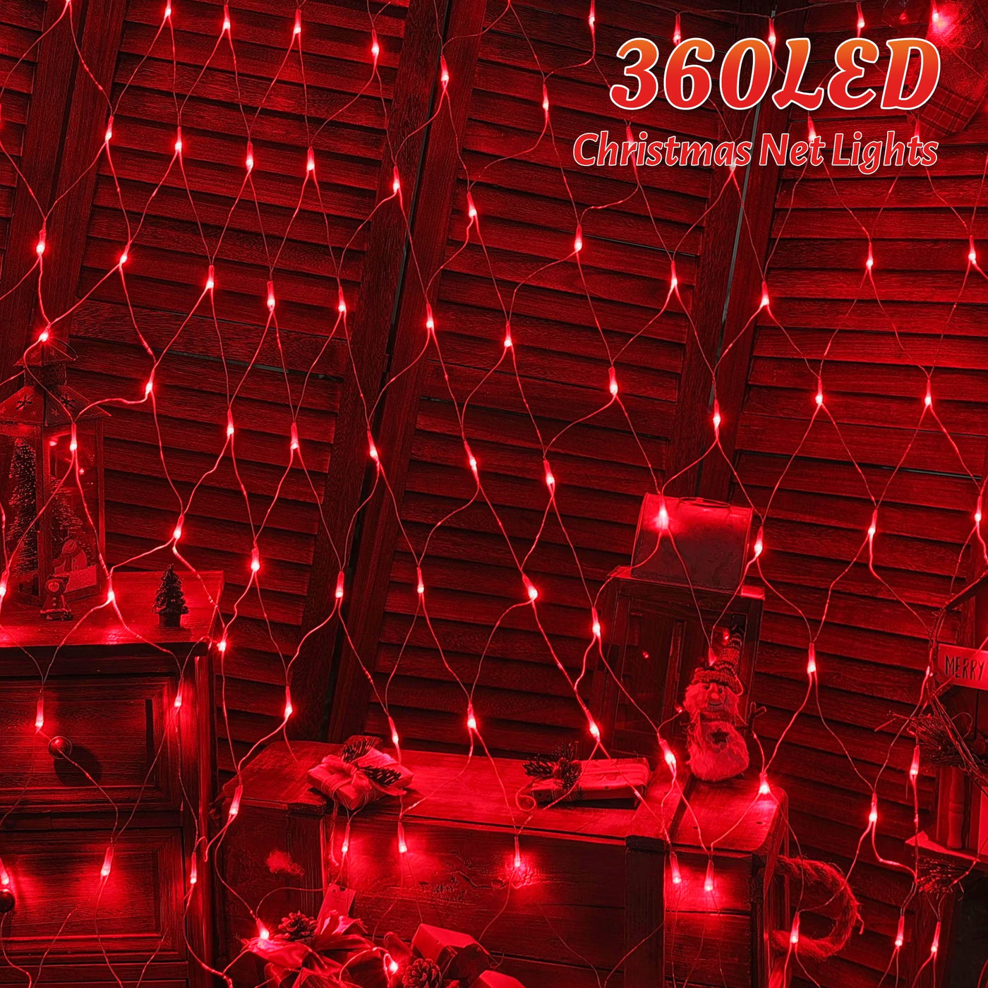 Heyfuni Net Mesh String Lights, 360Led Red Light Bulbs, 8 Lighting Modes, For Indoor Outdoor, Curtain, Christmas Tree, Bush, Party, Wedding, Fairy, Wall Decor (13 Ft X 5 Ft,Red)