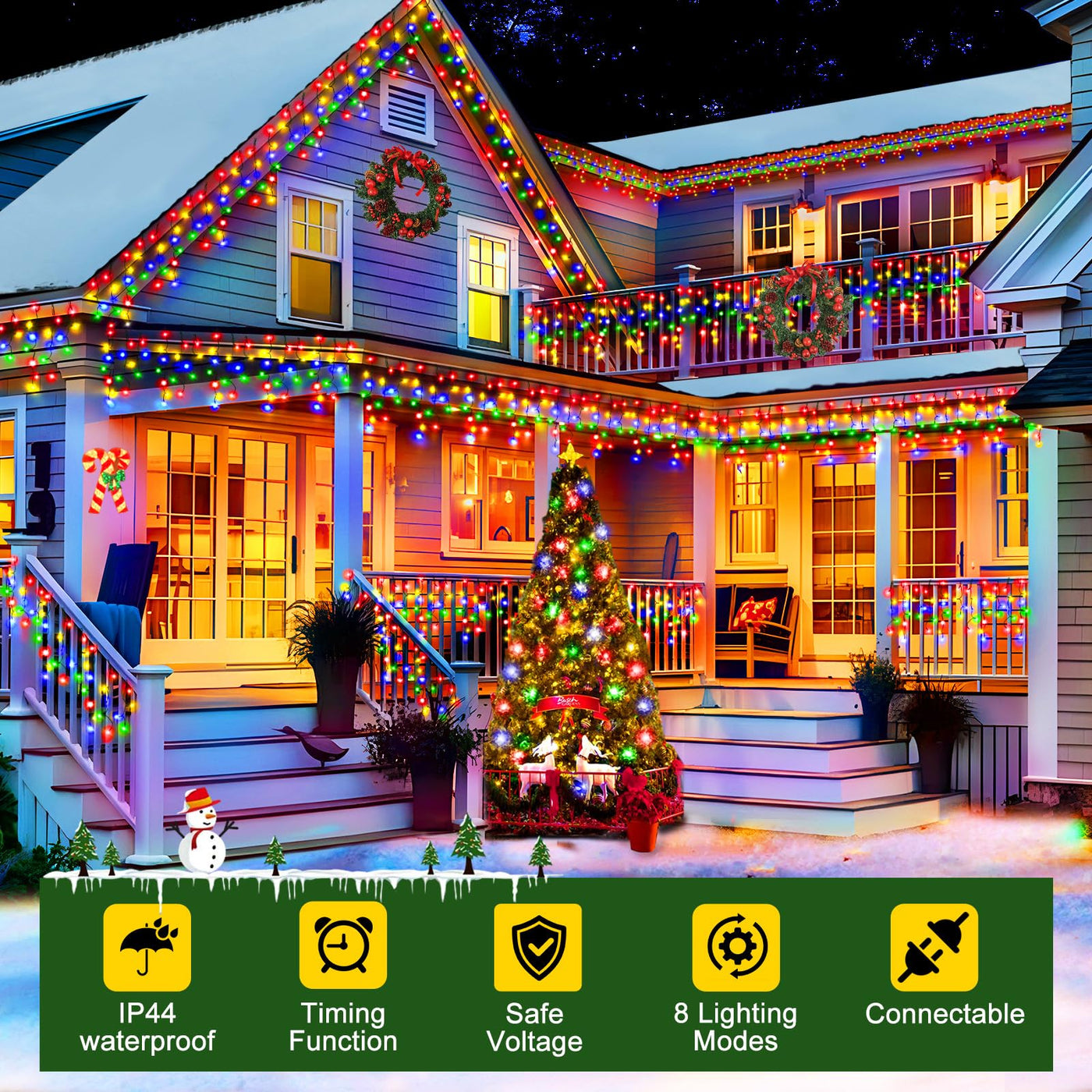 Hezbjiti Christmas Lights Outdoor Decorations, 400Led 33Ft Led Christmas Lights 8 Modes 75 Drops Fairy String Lights For Christmas Decor Eaves Party Yard Garden